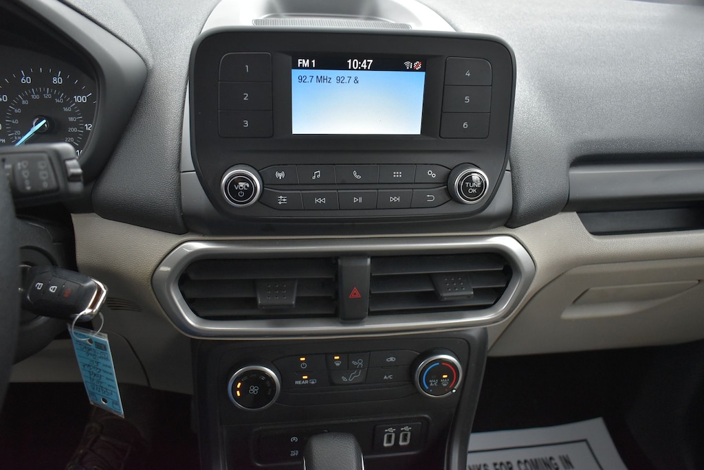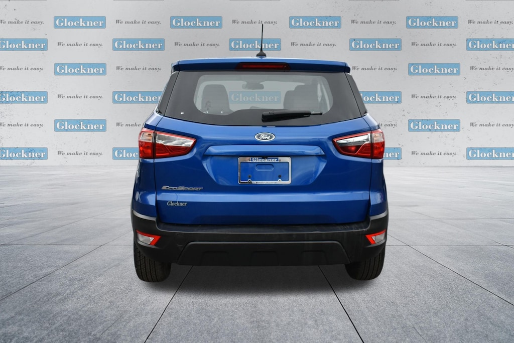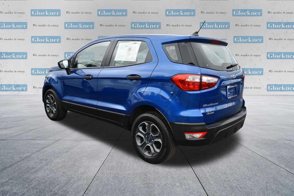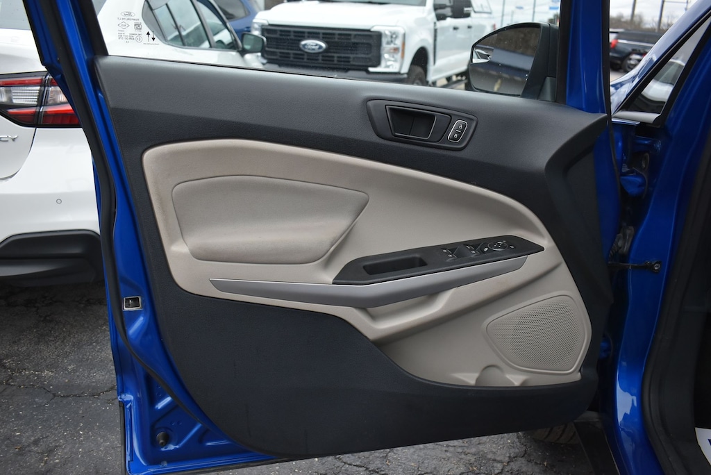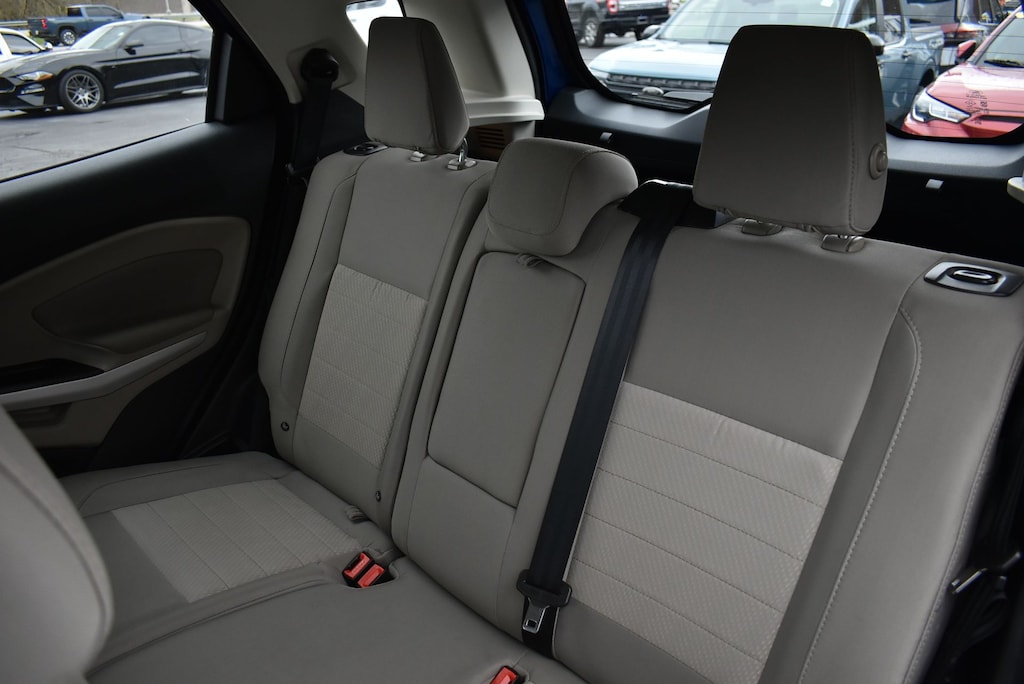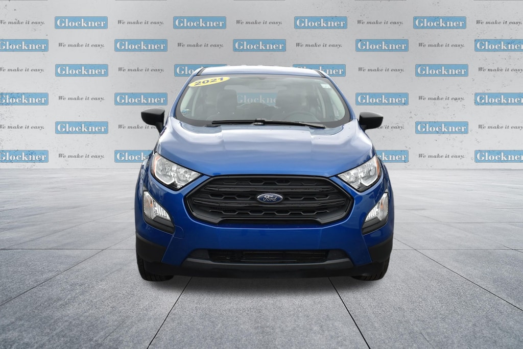 Glockner Ford Southpoint is proud to offer this charming 2021 Ford EcoSport in Lightning Blue. This 2021 Ford EcoSport has passed our comprehensive inspection and comes with the following features; Equipment Group 100A, Ford Blue Advantage: Blue Certified Certified, 3.44 Axle Ratio, 4-Wheel Disc Brakes, 6 Speakers, ABS brakes, Air Conditioning, Alloy wheels, AM/FM radio, Brake assist, Bumpers: body-color, Cloth Front Bucket Seats, Compass, Delay-off headlights, Driver door bin, Driver vanity mirror, Dual front impact airbags, Dual front side impact airbags, Electronic Stability Control, Emergency communication system: SYNC 3 911 Assist, Exterior Parking Camera Rear, Front anti-roll bar, Front Bucket Seats, Front Center Armrest, Front reading lights, Front wheel independent suspension, Fully automatic headlights, Illuminated entry, Knee airbag, Occupant sensing airbag, Outside temperature display, Overhead airbag, Overhead console, Panic alarm, Passenger door bin, Passenger vanity mirror, Power door mirrors, Power steering, Power windows, Radio data system, Radio: AM/FM/MP3 Stereo, Rear seat center armrest, Rear side impact airbag, Rear window defroster, Rear window wiper, Remote keyless entry, Speed control, Speed-sensing steering, Split folding rear seat, Steering wheel mounted audio controls, SYNC Communications & Entertainment System, Tachometer, Telescoping steering wheel, Tilt steering wheel, Traction control, Trip computer, Variably intermittent wipers, and Wheels: 16" Low-Gloss Magnetic-Painted.