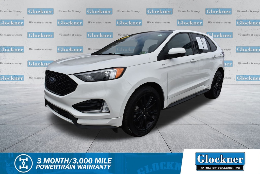 Glockner Ford Southpoint is proud to offer this good-looking 2022 Ford Edge in Star White Metallic Tri-Coat. This 2022 Ford Edge has passed our comprehensive inspection and comes with the following features; Equipment Group 250A, Ford Co-Pilot360 Assist+ (Adaptive Cruise Control w/Stop & Go, Connected Built-In Navigation, Evasive Steering Assist, and Lane Centering), Ford Blue Advantage: Blue Certified Certified, AWD, 4-Wheel Disc Brakes, 6 Speakers, ABS brakes, ActiveX Seating Material Heated Bucket Seats, Air Conditioning, Alloy wheels, AM/FM radio: SiriusXM with 360L, Auto High-beam Headlights, Auto-dimming Rear-View mirror, Automatic temperature control, Brake assist, Bumpers: body-color, Compass, Delay-off headlights, Driver door bin, Driver vanity mirror, Dual front impact airbags, Dual front side impact airbags, Electronic Stability Control, Emergency communication system: SYNC 4 911 Assist, FordPass Connect, Four wheel independent suspension, Front anti-roll bar, Front Bucket Seats, Front Center Armrest w/Storage, Front dual zone A/C, Front fog lights, Front reading lights, Fully automatic headlights, Garage door transmitter, Heated door mirrors, Heated front seats, Heated Steering Wheel, Illuminated entry, Knee airbag, Occupant sensing airbag, Outside temperature display, Overhead airbag, Overhead console, Panic alarm, Panoramic Vista Roof, Passenger door bin, Passenger vanity mirror, Power door mirrors, Power driver seat, Power Liftgate, Power passenger seat, Power steering, Power windows, Radio: AM/FM Stereo/MP3 Capable, Rear anti-roll bar, Rear Parking Sensors, Rear reading lights, Rear seat center armrest, Rear window defroster, Remote keyless entry, Security system, SiriusXM w/360L, Speed control, Speed-Sensitive Wipers, Split folding rear seat, Spoiler, Steering wheel mounted audio controls, SYNC 4A w/Enhanced Voice Recognition, Tachometer, Telescoping steering wheel, Tilt steering wheel, Traction control, Trip computer, Variably intermittent wipers, Wheels: 20" Premium Gloss Black-Painted Aluminum, 3.80 Axle Ratio, and Rear window wiper.