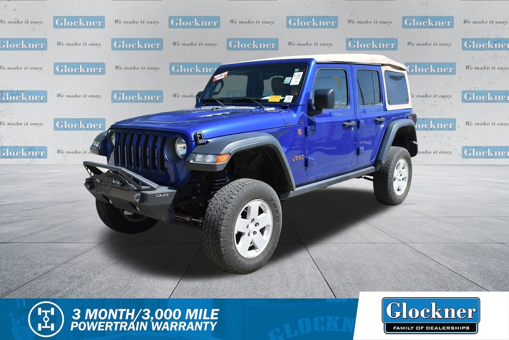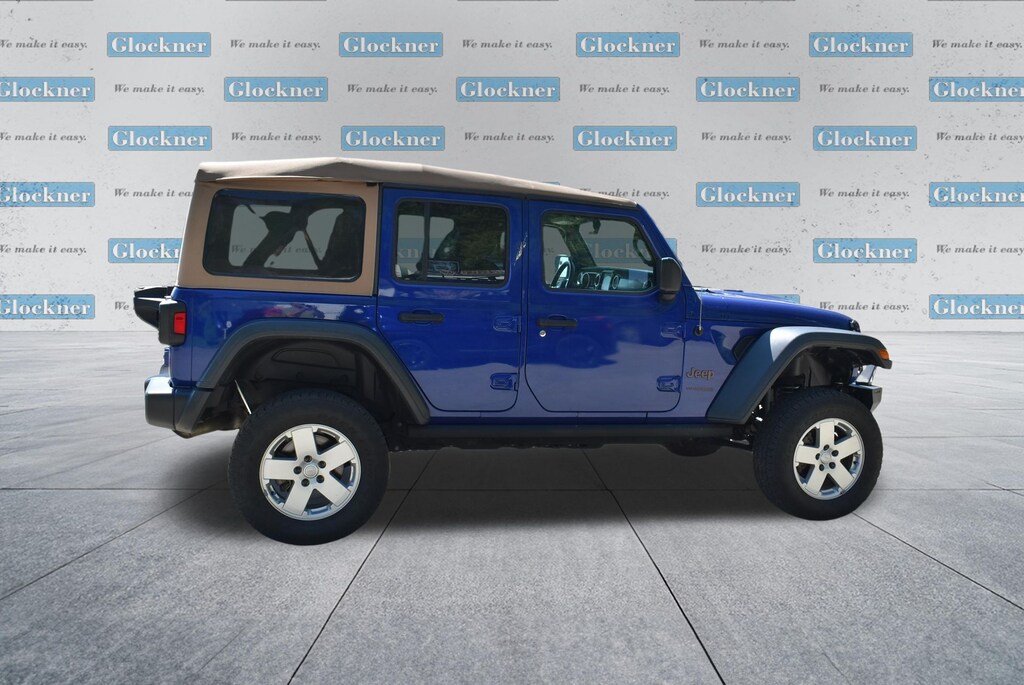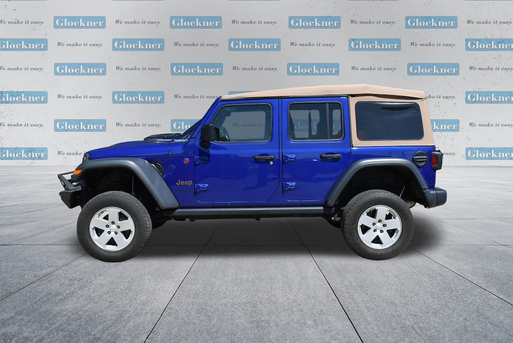 Glockner Ford Southpoint is proud to offer this terrific-looking and fun 2018 Jeep Wrangler in Ocean Blue Metallic Clearcoat. This 2018 Jeep Wrangler has passed our comprehensive inspection and comes with the following features; Cold Weather Group (Heated Front Seats and Heated Steering Wheel), Electronic Infotainment System Group (1-Year SiriusXM Guardian Trial, 5-Year SiriusXM Traffic Service, 5-Year SiriusXM Travel Link Service, 8.4" Touchscreen Display, Alpine Premium Audio System, Auto-Dimming Rear-View Mirror, GPS Navigation, HD Radio, Radio: Uconnect 4C Nav w/8.4" Display, Roadside Assistance & 9-1-1 Call, SiriusXM Traffic Plus, and SiriusXM Travel Link), Quick Order Package 24R, Ford Blue Advantage: Blue Certified Certified, 4-Wheel Disc Brakes, 4.10 Rear Axle Ratio, 8 Speakers, ABS brakes, Air Conditioning, Alloy wheels, AM/FM radio: SiriusXM, Apple CarPlay/Android Auto, Automatic temperature control, Brake assist, Compass, Delay-off headlights, Driver door bin, Driver vanity mirror, Dual front impact airbags, Dual front side impact airbags, Electronic Stability Control, Front anti-roll bar, Front Bucket Seats, Front Center Armrest w/Storage, Front dual zone A/C, Front fog lights, Front reading lights, Fully automatic headlights, Garage door transmitter, Heated door mirrors, Illuminated entry, Integrated roll-over protection, Leather steering wheel, MOPAR All-Weather Floor Mats, Non-Lock Fuel Cap w/o Discriminator, Occupant sensing airbag, Outside temperature display, Panic alarm, ParkView Rear Back-Up Camera, Passenger door bin, Passenger vanity mirror, Performance Suspension, Power door mirrors, Power steering, Power windows, Premium Black Sunrider Soft Top, Premium Cloth Low-Back Bucket Seats, Radio data system, Radio: Uconnect 4 w/7" Display, Rear anti-roll bar, Rear reading lights, Remote keyless entry, Remote Start System, Security system, Speed control, Split folding rear seat, Steering wheel mounted audio controls, Tachometer, Telescoping steering wheel, Tilt steering wheel, Traction control, Trip computer, Variably intermittent wipers, Voltmeter, and Wheels: 17" x 7.5" Polished w/Black Pockets.