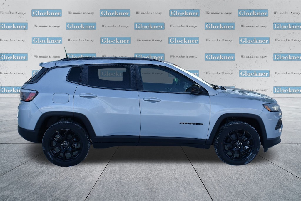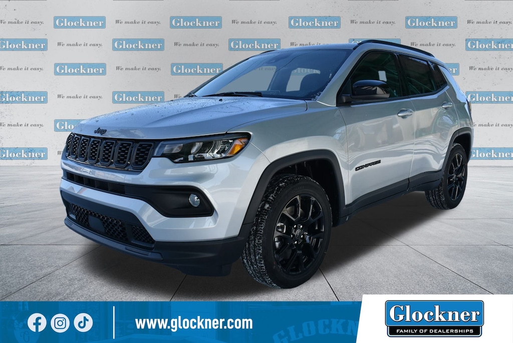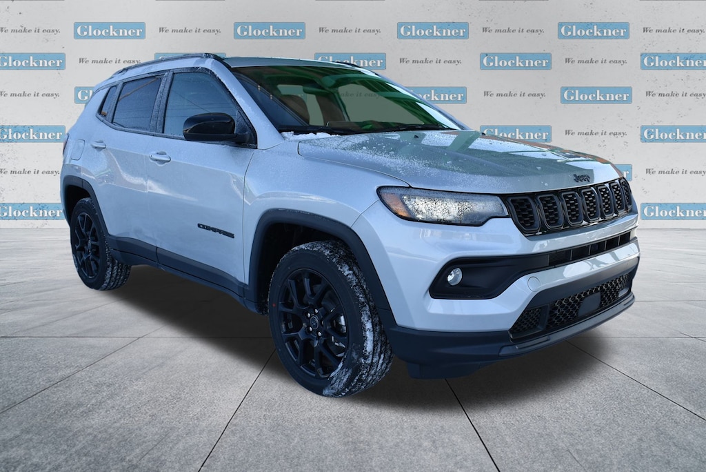 Glockner Chrysler Jeep Dodge Ram is proud to offer this beautiful 2026 Jeep Compass in silver zynith metallic clearcoat. This 2026 Jeep Compass has passed our comprehensive inspection and comes with the following features; Quick Order Package 29N Altitude (10.1" Touchscreen Display, Altitude Special Edition, Black Day Light Opening Moldings, Gloss Black Surround/Neutral Gray Rings, Neutral Gray Exterior Badging, Piano Black Interior Accents, Sliding Sun Visors with Illuminated Mirrors, and Wheels: 18" x 7" Gloss Black Painted Aluminum), 4WD, 17" x 7" Aluminum Wheels, 3.73 Final Drive Ratio, 4-Wheel Disc Brakes, 4G LTE Wi-Fi Hot Spot, 6 Speakers, ABS brakes, Air Conditioning, AM/FM radio: SiriusXM, Auto High-beam Headlights, Automatic temperature control, Bluetooth Handsfree Phone and Audio, Brake assist, Bumpers: body-color, Compass, Delay-off headlights, Driver door bin, Driver vanity mirror, Dual front impact airbags, Dual front side impact airbags, Electronic Stability Control, Emergency communication system: SiriusXM Guardian, Four wheel independent suspension, Front anti-roll bar, Front Bucket Seats, Front Center Armrest w/Storage, Front fog lights, Front License Plate Bracket, Front reading lights, Fully automatic headlights, Global Telematics Box Module, Heated door mirrors, Heated front seats, Heated steering wheel, Illuminated entry, Knee airbag, Leather Shift Knob, Leather steering wheel, Low tire pressure warning, MyFlexCare Service Plan, Occupant sensing airbag, Outside temperature display, Overhead airbag, Overhead console, Panic alarm, ParkView Rear Back-Up Camera, Passenger door bin, Passenger vanity mirror, Power door mirrors, Power steering, Power windows, Premium audio system: UConnect 5, Premium Cloth/Vinyl Bucket Seats, Radio: Uconnect 5 with 8.4" Display, Rear anti-roll bar, Rear seat center armrest, Rear window defroster, Rear window wiper, Remote keyless entry, Security system, SiriusXM Satellite Radio, Speed control, Split folding rear seat, Spoiler, Steering wheel mounted audio controls, Tachometer, Telescoping steering wheel, Tilt steering wheel, Traction control, Trip computer, Variably intermittent wipers, and Wheels: 19" x 7.5" Aluminum Painted.