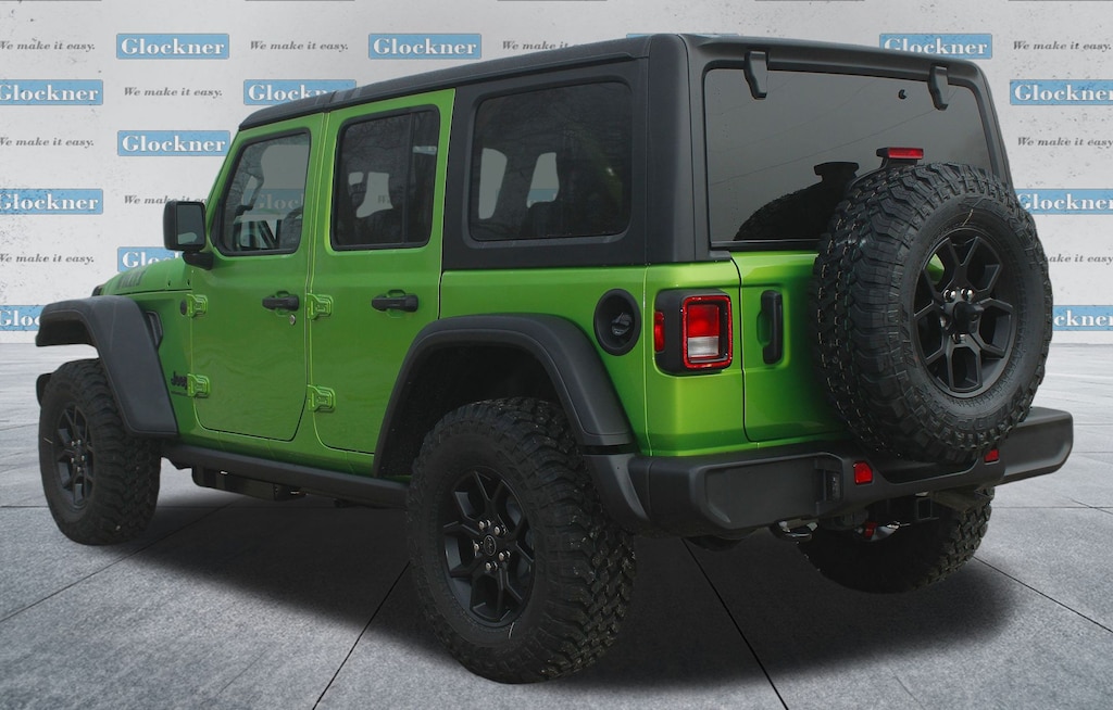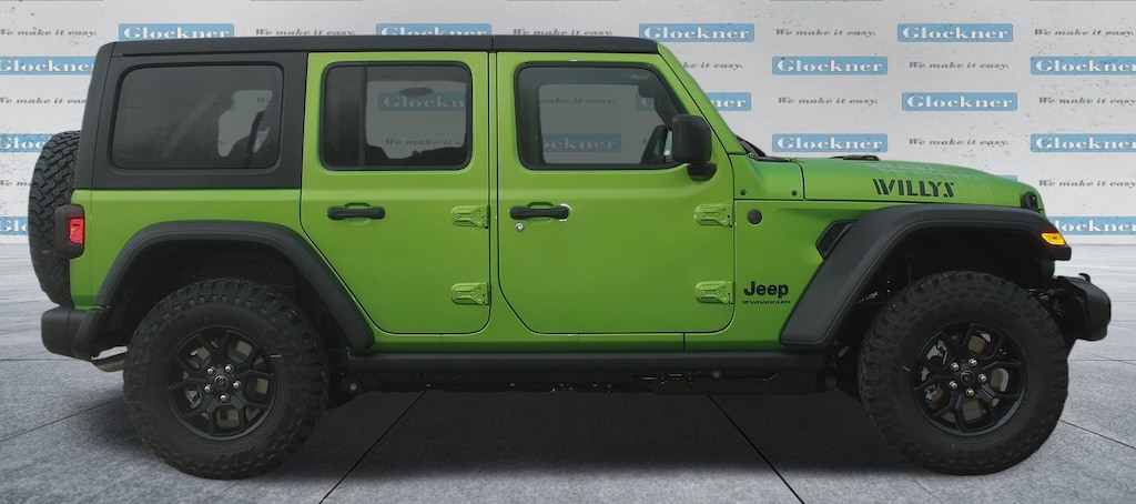 Glockner Chrysler Jeep Dodge Ram is proud to offer this great-looking and fun 2026 Jeep Wrangler in Mojito Clearcoat. This 2026 Jeep Wrangler has passed our comprehensive inspection and comes with the following features; Quick Order Package 24W Willys (4-Wheel Drive Swing Gate Decal, 7 and 4 Pin Wiring Harness, Advanced Brake Assist, Automatic Headlamps, Auxiliary Switches, Black Grille with Gloss Black Rings, Class II Receiver Hitch, Conventional Differential Front Axle, Corning Gorilla Glass, Dana M210 Wide HD Tube Front Axle, Dana M220 Wide Rear Axle, Daytime Running Lamps LED Accents, Deep Tint Sunscreen Windows, E-Locker Rear Axle, Enhanced Adaptive Cruise Control, Front LED Fog Lamps, Full Speed Forward Collision Warning Plus, Increased Travel Export Tuned Suspension, Injection Molded Black Rear Bumper, LED Premium Reflector Headlamps, Mold in Color Bumper with Gloss Black, Molded in Color Rubicon Highline Flare, MOPAR All-Weather Floor Mats, Off-Road Plus Mode, Power Heated Mirrors, Premium Wrapped Steering Wheel, Security Alarm, Sun Visors with Illuminated Vanity Mirrors, Wheels: 17" x 7.5" Painted Black, and Willys Hood Decal), 12.3" Touchscreen Display, 4-Wheel Disc Brakes, 4G LTE Wi-Fi Hot Spot, 8 Speakers, ABS brakes, Air Conditioning, AM/FM radio: SiriusXM with 360L, Apple CarPlay, Apple CarPlay/Android Auto, Aux Battery, Black 3-Piece Hard Top, Brake assist, Compass, Connectivity - US/Canada, Delay-off headlights, Driver door bin, Driver vanity mirror, Dual front impact airbags, Dual front side impact airbags, Electronic Stability Control, For More Info, Call 800-643-2112, Freedom Panel Storage Bag, Front anti-roll bar, Front Bucket Seats, Front Center Armrest w/Storage, Front fog lights, Front reading lights, Google Android Auto, Illuminated entry, Integrated Center Stack Radio, Integrated roll-over protection, Low tire pressure warning, Myflexcare Service Plan, No Soft Top, Non-Lock Fuel Cap Without Discriminator, Normal Duty Suspension, Occupant sensing airbag, Outside temperature display, Overhead airbag, Panic alarm, ParkView Rear Back-Up Camera, Passenger door bin, Passenger vanity mirror, Power steering, Power windows, Radio data system, Radio: Uconnect 5 with 12.3" Display, Rear anti-roll bar, Rear reading lights, Rear Window Defroster, Rear Window Wiper/Washer, Remote keyless entry, SiriusXM Radio Service, SiriusXM with 360L, Speed control, Split folding rear seat, Steering wheel mounted audio controls, Stop-Start Dual Battery System, Tachometer, Telescoping steering wheel, Tilt steering wheel, Traction control, Trip computer, Variably intermittent wipers, and Wheels: 17" x 7.5" Black Steel Styled.