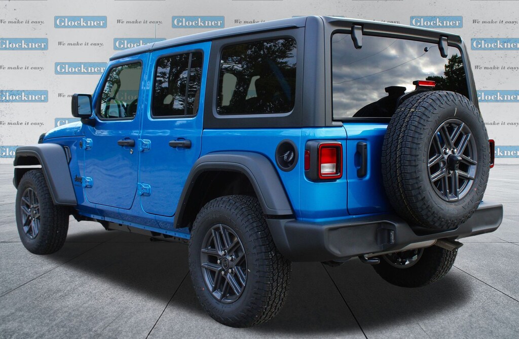 Glockner Chrysler Jeep Dodge Ram is proud to offer this good-looking and fun 2026 Jeep Wrangler in Hydro Blue Pearl Coat. This 2026 Jeep Wrangler has passed our comprehensive inspection and comes with the following features; Quick Order Package 24S Sport S (Advanced Brake Assist, Automatic Headlamps, Corning Gorilla Glass, Deep Tint Sunscreen Windows, Enhanced Adaptive Cruise Control, Full Speed Forward Collision Warning Plus, Power Heated Mirrors, Premium Wrapped Steering Wheel, Security Alarm, Sun Visors with Illuminated Vanity Mirrors, and Wheels: 17" x 7.5" Gray), 12.3" Touchscreen Display, 3.45 Overall Top Gear Ratio, 4-Wheel Disc Brakes, 4G LTE Wi-Fi Hot Spot, 8 Speakers, ABS brakes, Air Conditioning, AM/FM radio: SiriusXM with 360L, Apple CarPlay, Apple CarPlay/Android Auto, Aux Battery, Black 3-Piece Hard Top, Brake assist, Compass, Connectivity - US/Canada, Delay-off headlights, Driver door bin, Driver vanity mirror, Dual front impact airbags, Dual front side impact airbags, Electronic Stability Control, For More Info, Call 800-643-2112, Freedom Panel Storage Bag, Front anti-roll bar, Front Bucket Seats, Front Center Armrest w/Storage, Front fog lights, Front reading lights, Google Android Auto, Illuminated entry, Integrated Center Stack Radio, Integrated roll-over protection, Low tire pressure warning, Myflexcare Service Plan, No Soft Top, Non-Lock Fuel Cap Without Discriminator, Normal Duty Suspension, Occupant sensing airbag, Outside temperature display, Overhead airbag, Panic alarm, ParkView Rear Back-Up Camera, Passenger door bin, Passenger vanity mirror, Power steering, Power windows, Radio data system, Radio: Uconnect 5 with 12.3" Display, Rear anti-roll bar, Rear reading lights, Rear Window Defroster, Rear Window Wiper/Washer, Remote keyless entry, SiriusXM Radio Service, SiriusXM with 360L, Speed control, Split folding rear seat, Steering wheel mounted audio controls, Stop-Start Dual Battery System, Tachometer, Telescoping steering wheel, Tilt steering wheel, Traction control, Trip computer, Variably intermittent wipers, and Wheels: 17" x 7.5" Black Steel Styled.