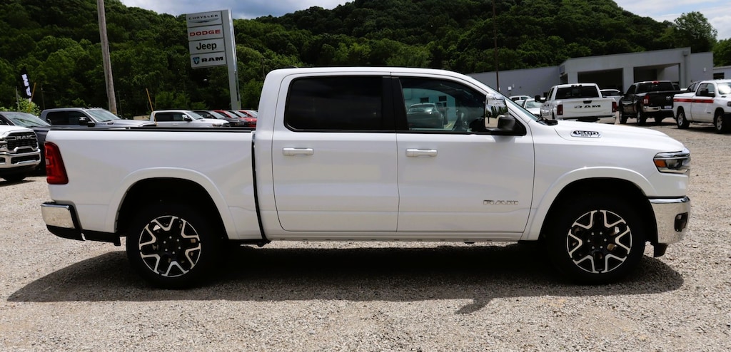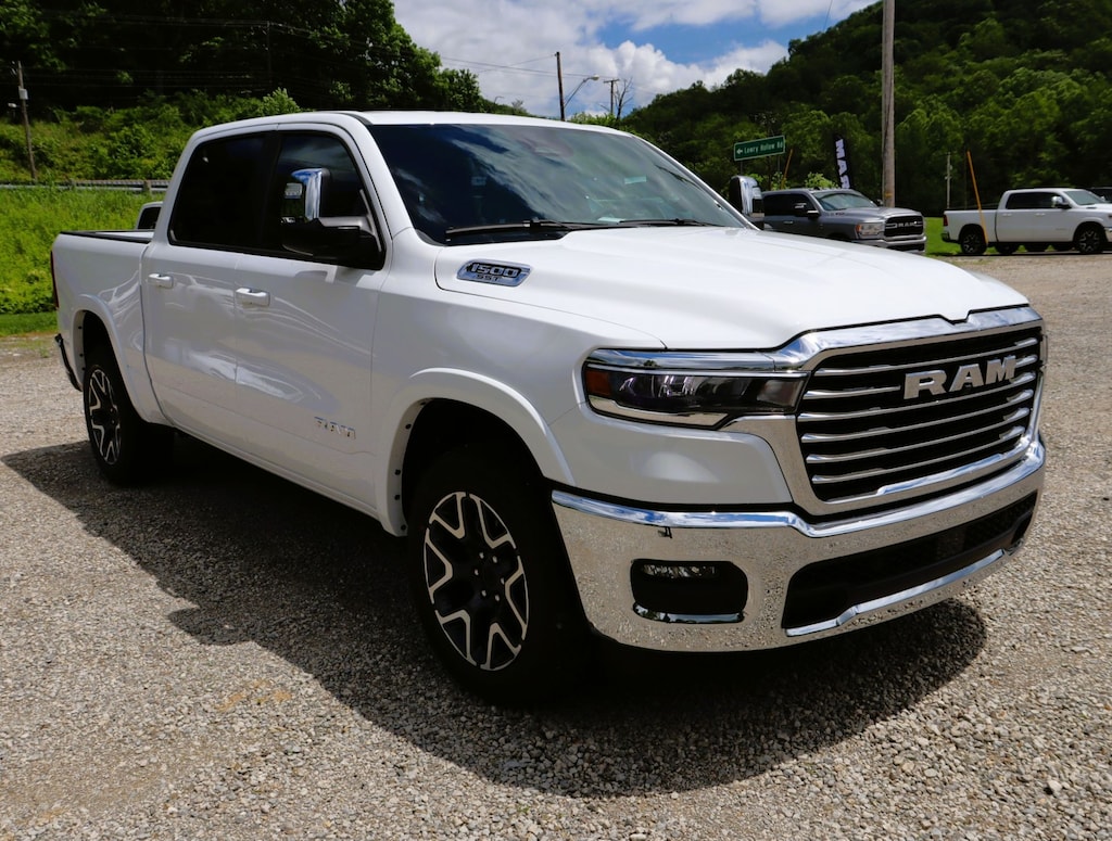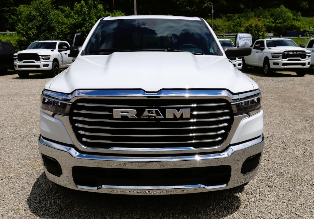 Glockner Chrysler Jeep Dodge Ram is proud to offer this outstanding-looking 2025 Ram 1500 in Bright White Clearcoat. This 2025 Ram 1500 has passed our comprehensive inspection and comes with the following features; Laramie Level 1 Equipment Group (Rain Sensitive Windshield Wipers and Remote Tailgate Release), Quick Order Package 21H Laramie, Towing Technology Group (Trailer Hitch Line-Up Assist), Trailer Tow Group (Auto Power-Folding Mirrors, Auto-Dimming Exterior Driver Mirror, Auto-Dimming Exterior Passenger Mirror, Black Exterior Mirrors, Chrome Exterior Mirrors, Exterior Mirrors Courtesy Lamps, Exterior Mirrors w/Heating Element, Exterior Mirrors w/Memory, Exterior Mirrors w/Supplemental Signals, Forward & Reverse Utility Lights, Mirror Clearance/Running Lights, Power Telescoping Mirrors, Power-Adjustable Convex Aux Mirrors, Trailer Brake Control, Trailer Light Check, Trailer Reverse Steering Control, Trailer Tire Pressure Monitoring System, and Trailer Tow Mirrors), 10 Speakers, 3 Rear Seat Head Restraints, 3.55 Rear Axle Ratio, 4 Way Front Headrests, 4-Wheel Disc Brakes, 4G LTE Wi-Fi Hot Spot, ABS brakes, Air Conditioning, Alloy wheels, AM/FM radio: SiriusXM with 360L, Apple CarPlay, Apple CarPlay/Android Auto, Audio memory, Auto High-beam Headlights, Auto-dimming door mirrors, Auto-dimming Rear-View mirror, Automatic temperature control, Brake assist, Bumpers: chrome, Compass, Connected Travel & Traffic Services, Connectivity - US/Canada, Convex Wide-Angle Exterior Mirror Insert, Delay-off headlights, Driver door bin, Driver Seat Memory, Driver vanity mirror, Dual front impact airbags, Dual front side impact airbags, Electronic Stability Control, Front anti-roll bar, Front Center Armrest w/Storage, Front dual zone A/C, Front fog lights, Front License Plate Bracket, Front reading lights, Front Seat Back Map Pockets, Front wheel independent suspension, Fully automatic headlights, Garage door transmitter, Google Android Auto, GPS Antenna Input, GPS Navigation, HD Radio, Heated door mirrors, Heated Front Seats, Heated front seats, Heated rear seats, Heated Steering Wheel, Heated steering wheel, Illuminated entry, Integrated Voice Command w/Bluetooth, Leather steering wheel, Leather Trim 40/20/40 Bench Seat, Low tire pressure warning, Memory seat, Navigation System, Occupant sensing airbag, Outside temperature display, Overhead airbag, Overhead console, Panic alarm, ParkView Rear Back-Up Camera, Passenger door bin, Passenger vanity mirror, Power 2-Way Driver Lumbar Adjust, Power 2-Way Passenger Lumbar Adjust, Power Adjust 8-Way Front Passenger Seat, Power door mirrors, Power driver seat, Power passenger seat, Power steering, Power windows, Radio data system, Radio: Uconnect 5 Nav w/12.0" Display, RAM Grille Badge - Chrome, Rear anti-roll bar, Rear reading lights, Rear seat center armrest, Rear step bumper, Remote keyless entry, Security system, SiriusXM w/360L, Speed control, Split folding rear seat, Steering wheel mounted audio controls, Tachometer, Telescoping steering wheel, Tilt steering wheel, Traction control, Trip computer, Turn signal indicator mirrors, USB Host Flip, Variably intermittent wipers, Ventilated Front Seats, Ventilated front seats, Voltmeter, and Wheels: 20" x 9" Premium Paint/Polish.