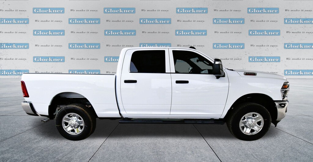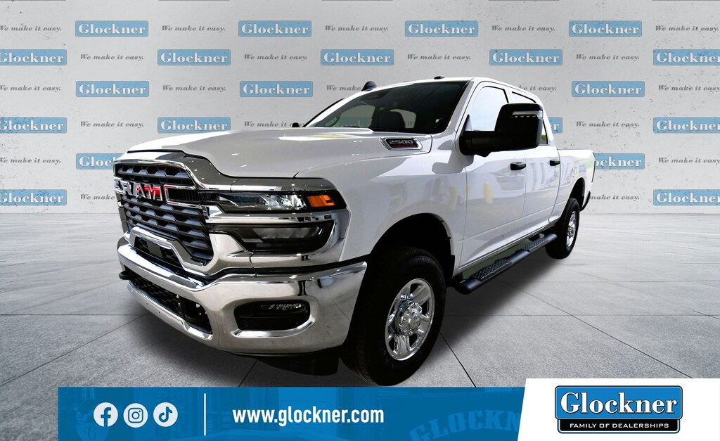 Glockner Chrysler Jeep Dodge Ram is proud to offer this fantastic 2025 Ram 2500 in Bright White Clearcoat. This 2025 Ram 2500 has passed our comprehensive inspection and comes with the following features; Quick Order Package 2UA Tradesman, Safety Group (Active Lane Management System, Adaptive Steering System, Auto High Beam Headlamp Control, Auto-Dimming Rear-View Mirror, Cluster 7.0" TFT Color Display, Drowsy Driver Detection, Luxury Steering Wheel, Rain Sensitive Windshield Wipers, Steering Wheel Mounted Audio Controls, and Traffic Sign Recognition), Tow Technology Plus Group (Auxiliary Switches Prep, Digital 3.0 Rear View Auto Dimming Mirror, and Trailer Reverse Steering Control), Towing Technology Group (Auto Power-Folding Mirrors, Black Exterior Mirrors, Blind Spot & Cross Path Detection, CTR Stop Lamp w/Cargo View Camera, Exterior Mirrors Courtesy Lamps, Exterior Mirrors w/Heating Element, Exterior Mirrors w/Supplemental Signals, Forward & Reverse Utility Lights, LED Tail Lamps, Mirror Running Lights, Power Adjust Mirrors, Power Adjustable Convex Aux Mirrors, Power Heated Folding Telescopic Mirrors, Power Telescoping Mirrors, Red Tail Lamp Bezels, Surround View Camera System, Trailer Reverse Guidance, and Trailer Tire Pressure Monitoring System), Tradesman Level 2 Equipment Group (115V Auxiliary Front Power Outlet, 12" Touchscreen Display, 2 Way Rear Headrest Seat, 4 Way Front Headrests, 40/20/40 Split Bench Seat, 400W Inverter, 4G LTE Wi-Fi Hot Spot, Air Conditioning ATC w/Dual Zone Control, Alexa Built-In, Anti-Spin Differential Rear Axle, Apple CarPlay, Bright Front Bumper, Bright Rear Bumper, Carpet Floor Covering, Center Hub, Chrome Grille Surround, Cloth 40/20/40 Bench Seat, Connected Travel & Traffic Services, Connectivity - US/Canada, Disassociated Touchscreen Display, Emergency Vehicle Alert System (EVAS), Exterior 115V AC Outlet, Front & Rear Floor Mats, Front Armrest w/Cupholders, Global Telematics Box Module (TBM), Google Android Auto, GPS Antenna Input, GPS Navigation, HD Radio, Integrated Voice Command w/Bluetooth, Manual Adjust 4-Way Driver Seat, Manual Adjust 4-Way Front Passenger Seat, Manual Folding Exterior Mirrors, Manual Telescoping Mirrors, Matte Black Mesh Grille w/Chrome, Mopar Black Tubular Side Steps, Off-Road Info Pages, ParkSense Front/Rear Park Assist System, Power Heated Folding Telescope Mirrors, Radio: Uconnect 5 Nav w/12.0" Display, Rear Folding Seat, Rear Power Sliding Window, Remote USB Port - Charge Only, Selectable Tire Fill Alert, SiriusXM Radio Service, SiriusXM w/360L, Storage Tray, Tinted Acoustic Windshield Glass, Trailer Tow Pages, and Wheels: 18" x 8.0" Steel Chrome Clad), 3.73 Axle Ratio, 4-Wheel Disc Brakes, 6 Speakers, ABS brakes, Air Conditioning, AM/FM radio: SiriusXM, Apple CarPlay/Android Auto, Black Wheel Center Hub, Brake assist, Compass, Delay-off headlights, Driver door bin, Dual front impact airbags, Dual front side impact airbags, Electronic Stability Control, Front anti-roll bar, Front Center Armrest w/Storage, Front fog lights, Front License Plate Bracket, Front reading lights, Fully automatic headlights, Heavy Duty Vinyl 40/20/40 Split Bench Seat, Illuminated entry, Low tire pressure warning, Occupant sensing airbag, Outside temperature display, Overhead airbag, Overhead console, Panic alarm, ParkView Rear Back-Up Camera, Passenger door bin, Passenger vanity mirror, Power steering, Power windows, Radio data system, Radio: Uconnect 5 w/8.4" Display, Rear anti-roll bar, Rear step bumper, Rear window defroster, Remote keyless entry, Speed control, Tachometer, Tilt steering wheel, Traction control, Variably intermittent wipers, Voltmeter, and Wheels: 17" x 7.5" Black Steel Styled.