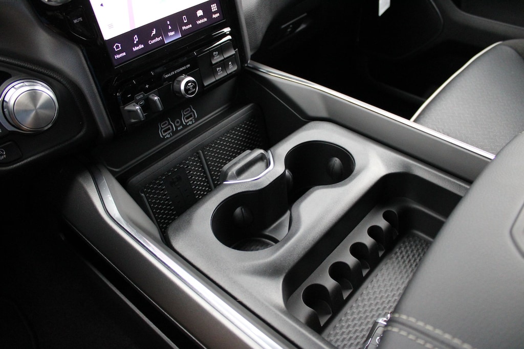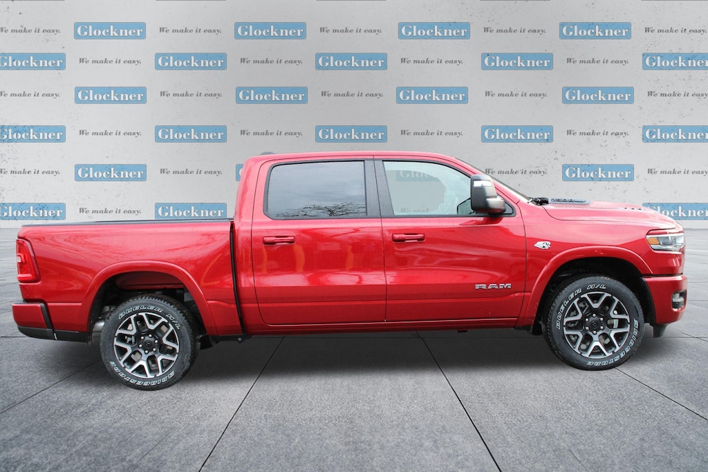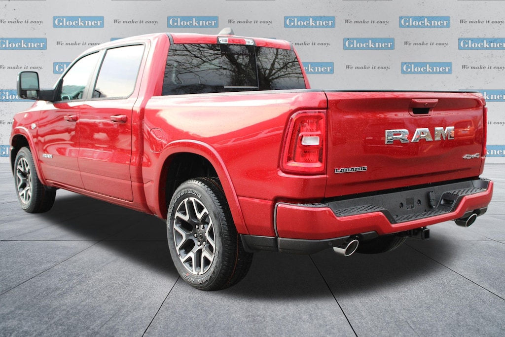 Glockner Chrysler Jeep Dodge Ram is proud to offer this charming 2026 Ram 1500 in Molten Red Pearlcoat. This 2026 Ram 1500 has passed our comprehensive inspection and comes with the following features; Laramie Level 1 Equipment Group (Rain Sensitive Windshield Wipers and Remote Tailgate Release), Quick Order Package 27H Laramie, Sport Appearance Package (Accent Color Premium Power Mirrors, Auto Power-Folding Mirrors, Auto-Dimming Exterior Driver Mirror, Black Interior Accents, Black Painted Exterior Mirrors Caps, Body Color Front Bumper, Body Color Rear Bumper with Step Pads, Bridgestone Brand Tires, Convex Wide-Angle Exterior Mirror Insert, Exterior Mirrors Courtesy Lamps, Exterior Mirrors with Heating Element, Exterior Mirrors with Memory, Exterior Mirrors with Supplemental Signals, Grille Surround 3 Body Color Tex 2 Black, RAM Grille Badge - Chrome, and Sport Performance Hood), Trailer Tow Group II (Trailer Brake Control, Trailer Light Check, Trailer Reverse Steering Control, and Trailer Tire Pressure Monitoring System), 10 Speakers, 4-Wheel Disc Brakes, 4G LTE Wi-Fi Hot Spot, ABS brakes, Active Noise Control System, Adjustable pedals, Air Conditioning, Alloy wheels, AM/FM radio: SiriusXM with 360L, Apple CarPlay/Android Auto, Audio memory, Auto High-beam Headlights, Auto-dimming door mirrors, Auto-Dimming Exterior Passenger Mirror, Auto-dimming Rear-View mirror, Automatic temperature control, Black Exterior Mirrors, Black Power-Fold Trailer Tow Mirrors, Brake assist, Bumpers: chrome, Chrome Exterior Mirrors, Compass, Connected Travel and Traffic Services, Connectivity - US/Canada, Delay-off headlights, Driver door bin, Driver vanity mirror, Dual front impact airbags, Dual front side impact airbags, Electronic Stability Control, Forward and Reverse Utility Lights, Front anti-roll bar, Front Bucket Seats, Front Center Armrest w/Storage, Front dual zone A/C, Front fog lights, Front License Plate Bracket, Front reading lights, Front wheel independent suspension, Fully automatic headlights, Garage door transmitter, GPS Navigation, Heated door mirrors, Heated front seats, Heated rear seats, Heated steering wheel, Illuminated entry, Integrated Center Stack Radio, Integrated Voice Command with Bluetooth, Leather steering wheel, Leather Trimmed Bucket Seats, Low tire pressure warning, Memory seat, Mirror Clearance/Running Lights, MyFlexCare Service Plan, Navigation System, Occupant sensing airbag, Off-Road Information Pages, Outside temperature display, Overhead airbag, Overhead console, Panic alarm, ParkView Rear Back-Up Camera, Passenger door bin, Passenger vanity mirror, Pedal memory, Power door mirrors, Power driver seat, Power passenger seat, Power steering, Power Telescoping Mirrors, Power windows, Power-Adjustable Convex Aux Mirrors, Radio data system, Radio: Uconnect 5 Navigation with 12.0" Display, Rear anti-roll bar, Rear reading lights, Rear seat center armrest, Rear step bumper, Remote keyless entry, Security system, SiriusXM Radio Service, SiriusXM with 360L, Speed control, Split folding rear seat, Steering wheel mounted audio controls, Tachometer, Telescoping steering wheel, Tilt steering wheel, Traction control, Trailer Tow Mirrors, Trip computer, Turn signal indicator mirrors, USB Host Flip, Variably intermittent wipers, Ventilated front seats, Voltmeter, and Wheels: 20" x 9" Premium Paint/Polish.