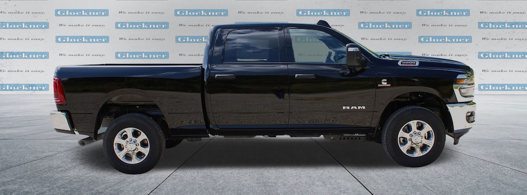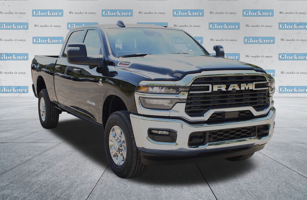 Glockner Chrysler Jeep Dodge Ram is proud to offer this wonderful 2026 Ram 2500 in Diamond Black Crystal Pearlcoat. This 2026 Ram 2500 has passed our comprehensive inspection and comes with the following features; Big Horn Level 2 Plus Equipment Group (115-Volt Auxiliary Front Power Outlet, 115V Auxiliary Rear Power Outlet, 12" Touchscreen Display, 2 Way Rear Headrest Seat, 2nd Row in Floor Storage Bins, 4 Way Front Headrests, 400W Inverter, 4G LTE Wi-Fi Hot Spot, 9 Alpine Speakers with Subwoofer, Active Lane Management System, Adaptive Steering System, Air Conditioning ATC with Dual Zone Control, Alexa Built-in, Anti-Spin Differential Rear Axle, Apple CarPlay, Auto High Beam Headlamp Control, Auto Power-Folding Mirrors, Auto-Dimming Rear-View Mirror, Black Exterior Mirrors, Blind Spot and Cross Path Detection, Bucket Seats, Center Stop Lamp with Cargo View Camera, Cluster 7.0" TFT Color Display, Connected Travel and Traffic Services, Connectivity - US/Canada, Dampened Tailgate, Disassociated Touchscreen Display, Drowsy Driver Detection, Dual Glove Boxes, Dual Wireless Charging Pad, Emergency Vehicle Alert System (EVAS), Exterior 115V AC Outlet, Exterior Mirrors Courtesy Lamps, Exterior Mirrors with Heating Element, Exterior Mirrors with Supplemental Signals, Foam Bottle Insert (door Trim Panel), Folding Flat Load Floor Storage, Footwell Courtesy Lamp, For Details, Visit DriveUconnect.com, For More Info, Call 800-643-2112, Forward and Reverse Utility Lights, Front Seat Back Map Pockets, Full Length Upgraded Floor Console, Global Telematics Box Module, Glove Box Lamp, Google Android Auto, GPS Antenna Input, GPS Navigation, HD Radio, Heated Front Seats, Heated Steering Wheel, Integrated Voice Command with Bluetooth, LED Bed Lighting, LED Tail Lamps, Locking Lower Glove Box, Luxury Steering Wheel, Manual Adjust 4-Way Front Passenger Seat, Media Hub with 2 Charge Only USBs, Mirror Running Lights, MOPAR Deployable Bed Step, MOPAR Spray in Bedliner, MOPAR Trailer Camera Wiring with No Camera, Off-Road Info Pages, Power 2-Way Driver Lumbar Adjust, Power Adjust 8-Way Driver Seat, Power Adjust Mirrors, Power Adjustable Pedals, Power Heated Folding Telescopic Mirrors, Power Telescoping Mirrors, Power-Adjustable Convex Aux Mirrors, Premium Cloth Bucket Seats, Radio: Uconnect 5 Navigation with 12.0" Display, Rain Sensitive Windshield Wipers, Rear 60/40 Folding Seat, Rear Dome with on/Off Switch Lamp, Rear Power Sliding Window, Red Tail Lamp Bezels, Remote Start System, Selectable Tire Fill Alert, SiriusXM Radio Service, SiriusXM with 360L, Steering Wheel Mounted Audio Controls, Sun Visors with Illuminated Vanity Mirrors, Surround View Camera System, Traffic Sign Recognition, Trailer Reverse Guidance, Trailer Tire Pressure Monitoring System, Trailer Tow Pages, and Universal Garage Door Opener), Cold Weather Group (Engine Block Heater and MOPAR Winter Front Grille Cover), Quick Order Package 24Z Big Horn, Tow Technology Plus Group (Digital 3.0 Rear View Auto Dimming Mirror and Trailer Reverse Steering Control), 4-Wheel Disc Brakes, 40/20/40 Split Bench Seat, 6 Speakers, ABS brakes, Air Conditioning, Alloy wheels, AM/FM radio: SiriusXM, Apple CarPlay/Android Auto, Brake assist, Bumpers: chrome, Center Hub, Cloth 40/20/40 Bench Seat, Compass, Delay-off headlights, Driver door bin, Dual front impact airbags, Dual front side impact airbags, Electronic Stability Control, Front anti-roll bar, Front Armrest with Cupholders, Front Center Armrest w/Storage, Front fog lights, Front License Plate Bracket, Front reading lights, Fully automatic headlights, Heated door mirrors, Illuminated entry, Low tire pressure warning, Manual Adjust 4-Way Driver Seat, MOPAR Front and Rear Rubber Floor Mats, Occupant sensing airbag, Outside temperature Offers may vary. Not all customers will qualify. See dealer for details. Price includes: $1000 - 2026 National Bonus Cash . Exp. 04/30/2026 $2000 - 2026 Great Lakes BC Select Inventory Bonus Cash . Exp. 04/30/2026