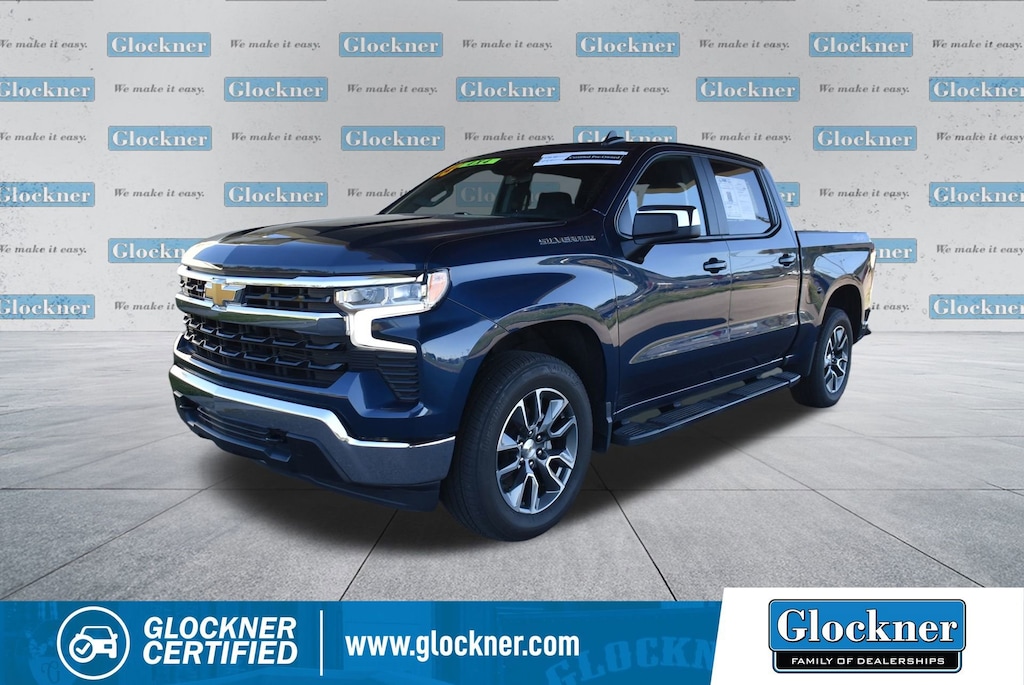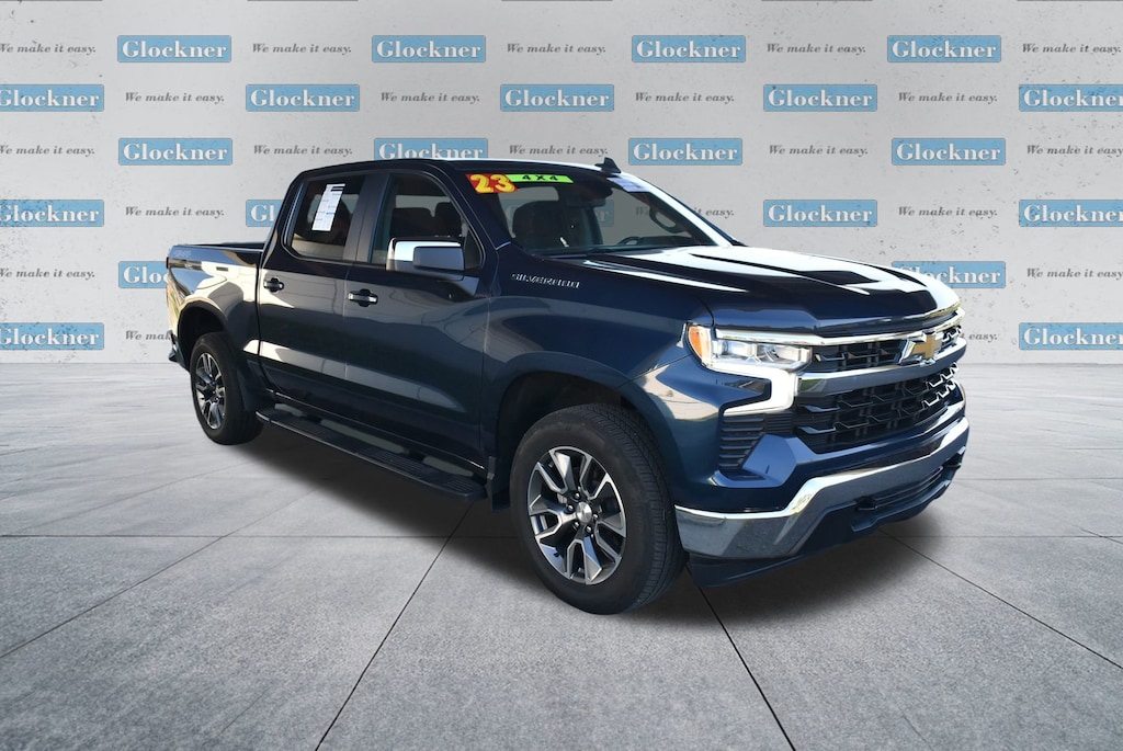 Certified. Certification Program Details: 12 Months or 12,000 miles Comprehensive Warranty. 5 Years or 100,000 miles Powertrain Warranty.Glockner of Ironton is proud to offer this hard-working 2023 Chevrolet Silverado 1500 in Northsky Blue Metallic. This 2023 Chevrolet Silverado 1500 has passed our comprehensive inspection and comes with the following features; Convenience Package (10-Way Power Driver Seat w/Lumbar, 120-Volt Bed Mounted Power Outlet, 120-Volt Instrument Panel Power Outlet, Dual Rear USB Ports (Charge Only), Dual-Zone Automatic Climate Control, Heated Driver & Front Outboard Passenger Seats, Heated Steering Wheel, Keyless Open & Start, and Wrapped Steering Wheel), High Capacity Suspension Package, Standard Suspension Package, Trailering Package (Hitch Guidance), Glockner Certified Certified, 8-Speed Automatic, 4WD, Black Cloth, 12.3 Multicolor Reconfigurable Digital Display, 3.42 Rear Axle Ratio, 4-Wheel Disc Brakes, 40/20/40 Front Split-Bench Seat, 6 Speakers, 6-Speaker Audio System, ABS brakes, Air Conditioning, All-Star Edition, Alloy wheels, AM/FM radio: SiriusXM with 360L, Apple CarPlay/Android Auto, Auto High-beam Headlights, Auto-Locking Rear Differential, Automatic Emergency Braking, Automatic temperature control, Bluetooth® For Phone, Brake assist, Bumpers: chrome, Chevrolet Connected Access Capable, Chrome Mirror Caps, Cloth Seat Trim, Color-Keyed Carpeting Floor Covering, Compass, Deep-Tinted Glass, Delay-off headlights, Driver door bin, Driver vanity mirror, Dual front impact airbags, Dual front side impact airbags, Electric Rear-Window Defogger, Electrical Steering Column Lock, Electronic Cruise Control, Electronic Stability Control, Following Distance Indicator, Forward Collision Alert, Front anti-roll bar, Front Center Armrest w/Storage, Front dual zone A/C, Front Frame-Mounted Black Recovery Hooks, Front Pedestrian Braking, Front reading lights, Front wheel independent suspension, Fully automatic headlights, HD Rear Vision Camera, Heated door mirrors, Heated front seats, Heated steering wheel, Illuminated entry, IntelliBeam Automatic High Beam On/Off, Lane Keep Assist w/Lane Departure Warning, LED Cargo Area Lighting, Low tire pressure warning, Not Equipped w/Steering Column Lock, Occupant sensing airbag, OnStar & Chevrolet Connected Services Capable, Outside temperature display, Overhead airbag, Overhead console, Panic alarm, Passenger door bin, Passenger vanity mirror, Power door mirrors, Power driver seat, Power Front Windows w/Driver Express Up/Down, Power Front Windows w/Passenger Express Down, Power Rear Windows w/Express Down, Power steering, Power windows, Premium audio system: Chevrolet Infotainment 3 Premium, Radio data system, Radio: Chevrolet Infotainment 3 Premium System, Rear 60/40 Folding Bench Seat (Folds Up), Rear reading lights, Rear step bumper, Rear window defroster, Remote keyless entry, Remote Vehicle Starter System, Security system, SiriusXM w/360L, Speed control, Speed-sensing steering, Split folding rear seat, Steering Wheel Audio Controls, Steering wheel mounted audio controls, Tachometer, Telescoping steering wheel, Theft Deterrent System (Unauthorized Entry), Tilt steering wheel, Traction control, Trip computer, Variably intermittent wipers, Voltmeter, Wheels: 20 x 9 Painted Aluminum, Wi-Fi Hot Spot Capable, and Wireless Phone Projection.8-Speed Automatic, 4WD, Black Cloth.