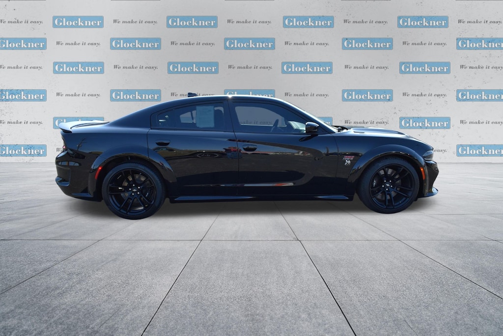 Glockner Chrysler Dodge Jeep Ram of Ashland is proud to offer this beautiful 2023 Dodge Charger in Pitch Black Clearcoat. This 2023 Dodge Charger has passed our comprehensive inspection and comes with the following features; harman/kardon Audio Group (19 harman/kardon GreenEdge Speakers, harman/kardon GreenEdge Amp, and Surround Sound), Navigation & Travel Group (1-Yr SiriusXM Guardian Trial, 2-Piece Shark Fin Antenna, 4G LTE Wi-Fi Hot Spot, 5-Year SiriusXM Traffic Service, 5-Year SiriusXM Travel Link Service, 8.4" Touchscreen Display, Apple CarPlay, Compass Gauge, For Details, Visit DriveUconnect.com, Google Android Auto, GPS Antenna Input, GPS Navigation, HD Radio, Integrated Center Stack Radio, Integrated Voice Command w/Bluetooth, Media Hub (2 USB, AUX), Radio: Uconnect 4C Nav w/8.4" Display, SiriusXM Traffic Plus, SiriusXM Travel Link, and USB Host Flip), Plus Group (Auto Adjust In Reverse Exterior Mirrors, Auto-Dimming Exterior Driver Mirror, Black-Edged Premium Floormats, Blind Spot & Cross Path Detection, Blind Spot Memory/Power/Heat Mirror, Driver & Passenger Lower LED Lamps, Exterior Mirrors Courtesy Lamps, Exterior Mirrors w/Heating Element, Front Overhead LED Lighting, Heated Front Seats, Power 2-Way Driver Lumbar Adjust, Power 2-Way Passenger Lumbar Adjust, Power Front Driver/Passenger Seats, Power Tilt/Telescope Steering Column, Premium-Stitched Dash Panel, Radio/Driver Seat/Mirrors Memory, Rear Armrest w/Cupholder Seat, Scat Pack Logo Nappa/Alcantara Seat, and Ventilated Front Seats), Quick Order Package 21V Scat Pack Widebody (All Speed Traction Control, Body Color Fender Flares, Brembo 6-Pot Fixed Front Caliper Brakes, Flat-Bottom Steering Wheel, Performance Shift Indicator, Wheels: 20" x 11" Carbon Black Aluminum, and Widebody Competition Suspension), Technology Group (Adaptive Cruise Control w/Stop, Advanced Brake Assist, Auto High Beam Headlamp Control, Full Speed FWD Collision Warn Plus, Lane Departure Warning Plus, and Rain Sensitive Windshield Wipers), Widebody Package, Glockner Certified Certified, Black Artificial Leather, 4-Wheel Disc Brakes, 6 Speakers, ABS brakes, Adaptive Damping Suspension (DISC), Air Conditioning, Alloy wheels, AM/FM radio: SiriusXM, Anti-whiplash front head restraints, Apple CarPlay/Android Auto, Auto-dimming Rear-View mirror, Automatic temperature control, Brake assist, Bumpers: body-color, Cloth Performance Seats w/Heat, Compass, Delay-off headlights, Driver door bin, Driver vanity mirror, Dual front impact airbags, Dual front side impact airbags, Electronic Stability Control, Emergency communication system: SiriusXM Guardian, Four wheel independent suspension, Front anti-roll bar, Front Bucket Seats, Front Center Armrest, Front dual zone A/C, Front fog lights, Front reading lights, Fully automatic headlights, Garage door transmitter: HomeLink, Heated door mirrors, Heated front seats, Heated steering wheel, Illuminated entry, Knee airbag, Leather Shift Knob, Low tire pressure warning, Occupant sensing airbag, Outside temperature display, Overhead airbag, Overhead console, Panic alarm, ParkView Rear Back-Up Camera, Passenger door bin, Passenger vanity mirror, Power door mirrors, Power driver seat, Power steering, Power Sunroof, Power windows, Radio: Uconnect 4C w/8.4" Display, Rear anti-roll bar, Rear reading lights, Rear seat center armrest, Rear window defroster, Remote keyless entry, Security system, Speed control, Speed-Sensitive Wipers, Split folding rear seat, Spoiler, Sport steering wheel, Steering wheel mounted audio controls, Tachometer, Telescoping steering wheel, Tilt steering wheel, Traction control, Trip computer, Variably intermittent wipers, and Wheels: 20" x 9" Lo Gloss Granite CrystaL.