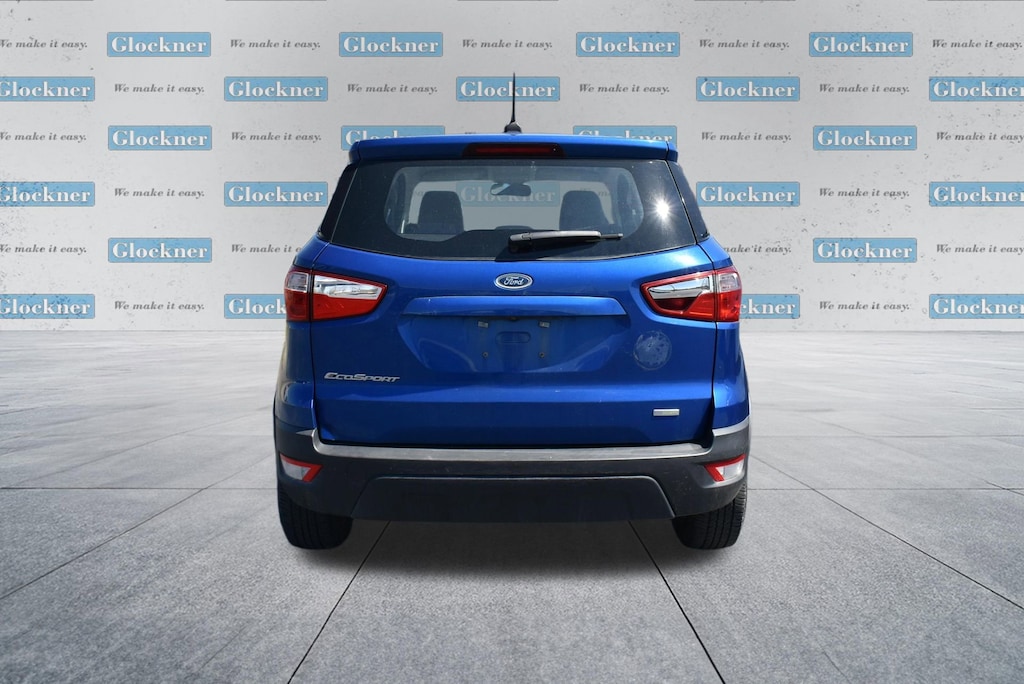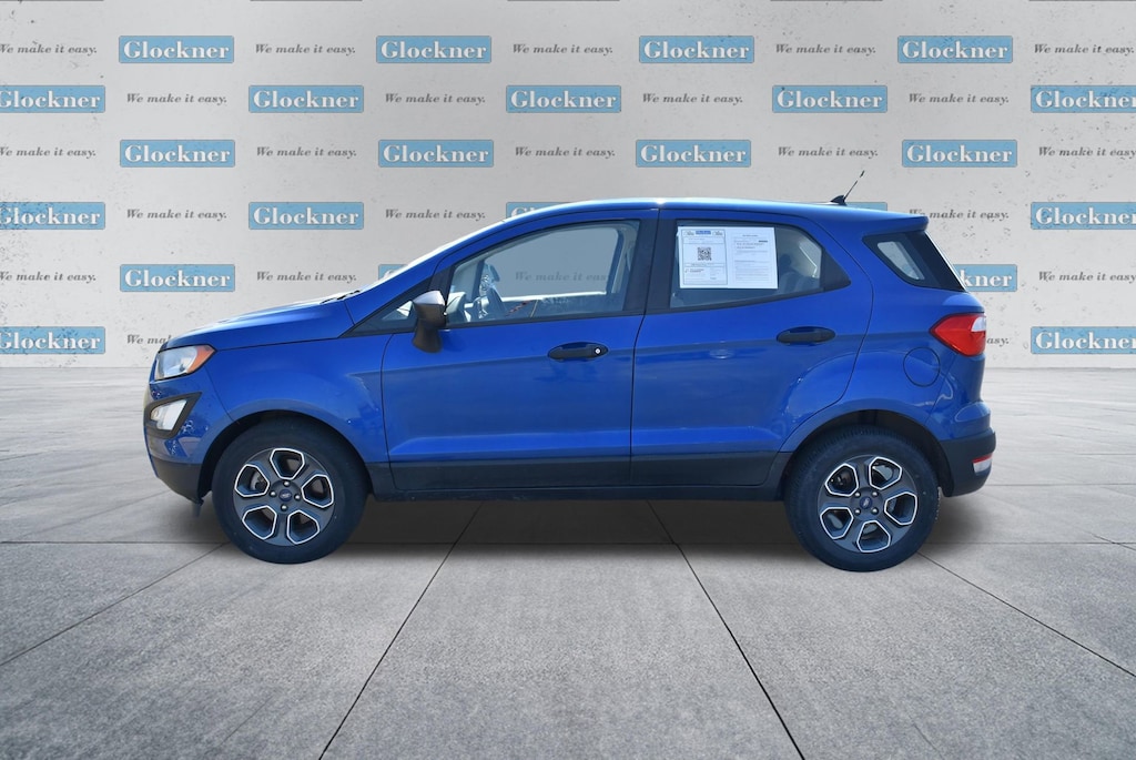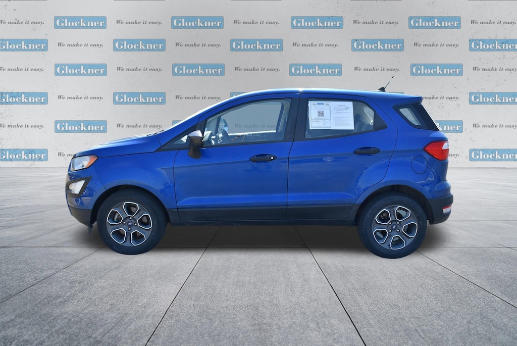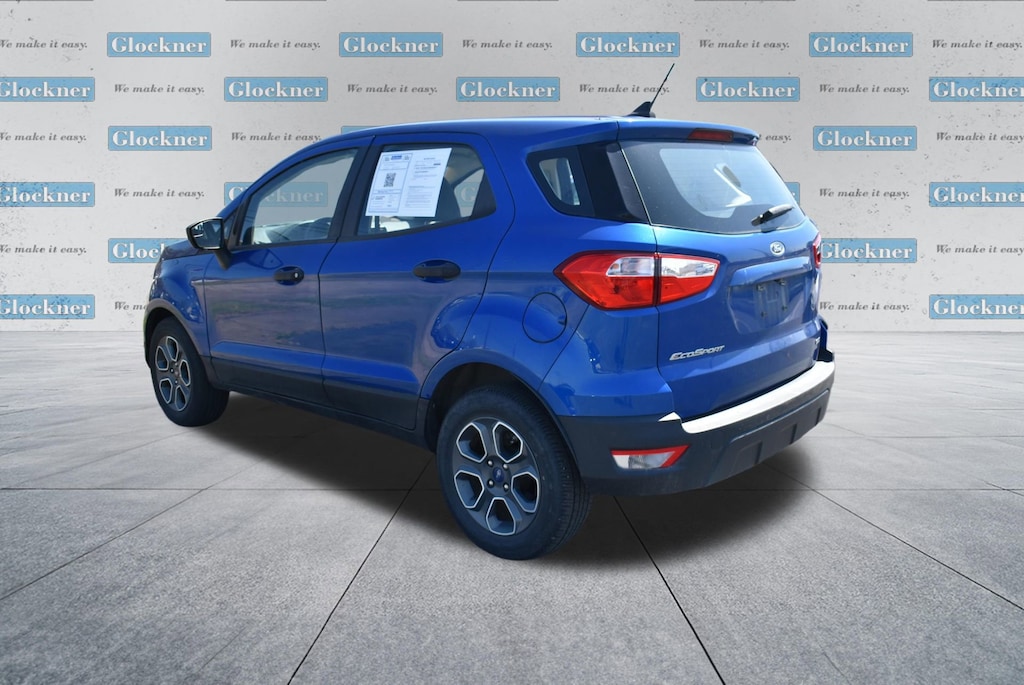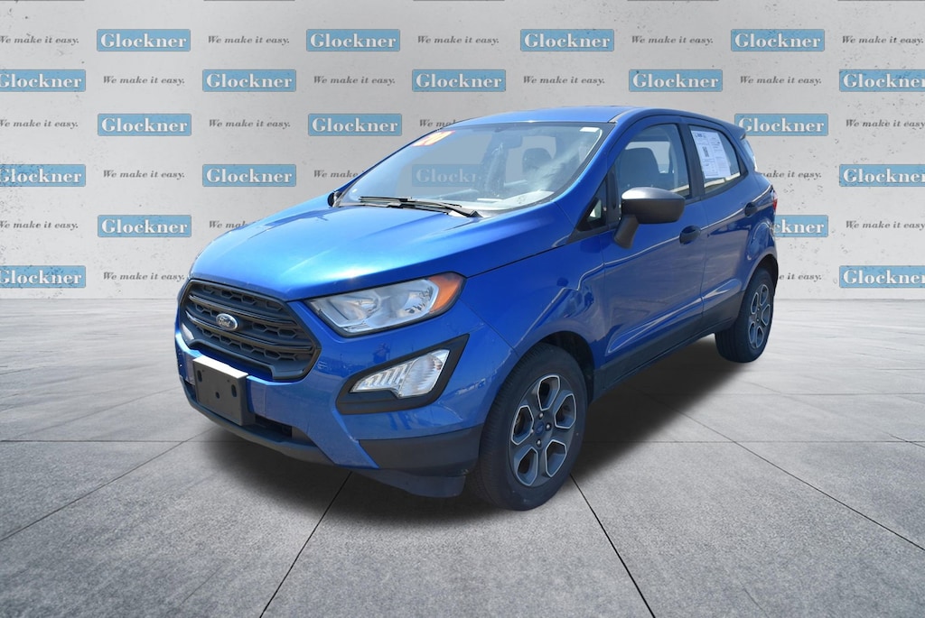 Glockner of Ironton is proud to offer this handsome 2020 Ford EcoSport in Lightning Blue. This 2020 Ford EcoSport has passed our comprehensive inspection and comes with the following features; Equipment Group 100A, Glockner Certified Certified, 3.44 Axle Ratio, 4-Wheel Disc Brakes, 6 Speakers, ABS brakes, Air Conditioning, Alloy wheels, AM/FM radio, Brake assist, Bumpers: body-color, Cloth Front Bucket Seats, Compass, Delay-off headlights, Driver door bin, Driver vanity mirror, Dual front impact airbags, Dual front side impact airbags, Electronic Stability Control, Emergency communication system: 911 Assist, Exterior Parking Camera Rear, Front anti-roll bar, Front Bucket Seats, Front Center Armrest, Front reading lights, Front wheel independent suspension, Fully automatic headlights, Illuminated entry, Knee airbag, Low tire pressure warning, Occupant sensing airbag, Outside temperature display, Overhead airbag, Overhead console, Panic alarm, Passenger door bin, Passenger vanity mirror, Power door mirrors, Power steering, Power windows, Radio data system, Radio: AM/FM Stereo w/MP3 Capable, Rear seat center armrest, Rear side impact airbag, Rear window defroster, Rear window wiper, Remote keyless entry, Speed control, Speed-sensing steering, Split folding rear seat, Steering wheel mounted audio controls, SYNC Communications & Entertainment System, Tachometer, Telescoping steering wheel, Tilt steering wheel, Tire Inflator & Sealant Kit, Traction control, Trip computer, Variably intermittent wipers, and Wheels: 16 Low-Gloss Magnetic-Painted.