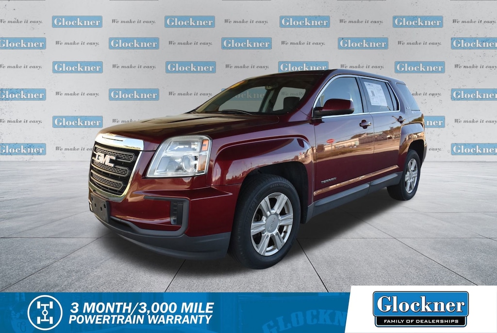 Glockner of Ironton is proud to offer this superb-looking 2016 GMC Terrain in Crimson Red Tintcoat. This 2016 GMC Terrain has passed our comprehensive inspection and comes with the following features; Preferred Equipment Group 3SA (Single-Zone Manual Front Climate Control), 17 x 7 Aluminum Wheels, 3.23 Axle Ratio, 4-Wheel Disc Brakes, 6 Speakers, 6-Speaker Audio System Feature, ABS brakes, Air Conditioning, Alloy wheels, AM/FM radio: SiriusXM, Auto-dimming Rear-View mirror, Bluetooth® For Phone, Brake assist, Bumpers: body-color, Compass, Delay-off headlights, Driver door bin, Driver vanity mirror, Dual front impact airbags, Dual front side impact airbags, E10 Fuel Capable, Electronic Stability Control, Emergency communication system, Exterior Parking Camera Rear, Four wheel independent suspension, Front anti-roll bar, Front Bucket Seats, Front Center Armrest, Front License Plate Bracket, Front reading lights, Fully automatic headlights, Heated door mirrors, Illuminated entry, Low tire pressure warning, Occupant sensing airbag, Outside temperature display, Overhead airbag, Panic alarm, Passenger door bin, Passenger vanity mirror, Power door mirrors, Power driver seat, Power steering, Power windows, Premium Cloth Seat Trim, Radio data system, Radio: Color Touch AM/FM Stereo, Rear anti-roll bar, Rear seat center armrest, Rear window defroster, Rear window wiper, Remote keyless entry, Security system, SiriusXM Satellite Radio, Speed control, Speed-sensing steering, Split folding rear seat, Spoiler, Steering wheel mounted audio controls, Tachometer, Telescoping steering wheel, Tilt steering wheel, Traction control, Trip computer, and Variably intermittent wipers.Odometer is 27819 miles below market average!22/32 City/Highway MPGReviews:* Powerful available V6 engine; quiet interior; comfortable highway ride; spacious and adjustable backseat. Source: EdmundsAwards:* JD Power Initial Quality Study (IQS) * 2016 IIHS Top Safety Pick * 2016 IIHS Top Safety Pick with optional front crash prevention * 2016 KBB.com Brand Image Awards