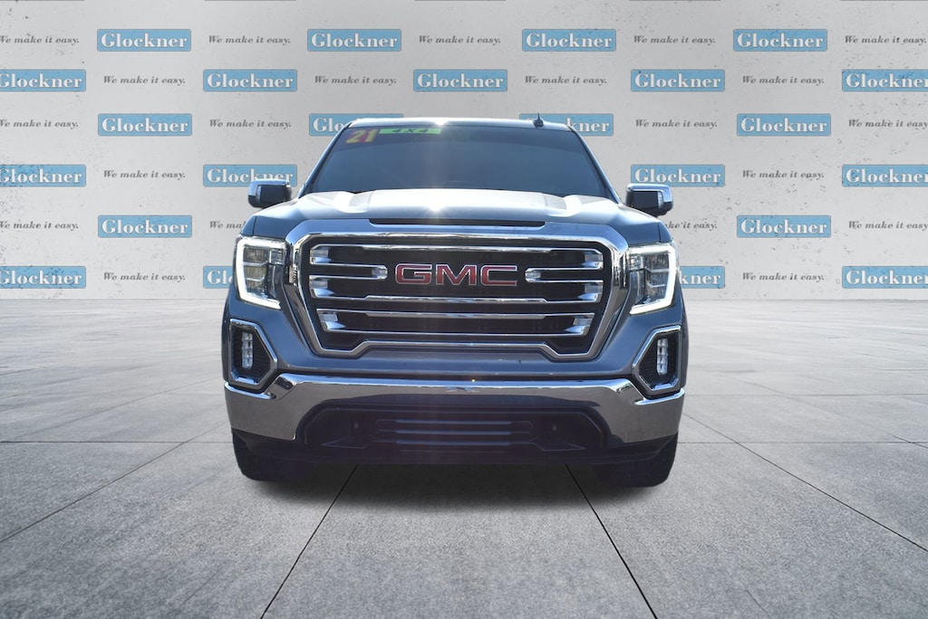 Glockner of Ironton is proud to offer this great-looking 2021 GMC Sierra 1500 in Satin Steel Metallic. This 2021 GMC Sierra 1500 has passed our comprehensive inspection and comes with the following features; Preferred Equipment Group 4SA (12-Volt Rear Auxiliary Power Outlet, 120-Volt Bed Mounted Power Outlet, 120-Volt Instrument Panel Power Outlet, 170 Amp Alternator, 4G LTE Wi-Fi Hotspot Capable, Auto-Locking Rear Differential, Auxiliary External Transmission Oil Cooler, Chrome Grille, Color-Keyed Carpeting Floor Covering, Compass, Deep-Tinted Glass, Electric Rear-Window Defogger, Electrical Lock Control Steering Column, Front Frame-Mounted Black Recovery Hooks, GMC Connected Access Capable, Heated Driver & Front Outboard Passenger Seating, Hitch Guidance w/Hitch View, In-Vehicle Trailering App, Integrated Trailer Brake Controller, Keyless Open & Start, LED Cargo Area Lighting, Manual Tilt-Wheel & Telescoping Steering Column, OnStar & GMC Connected Services Capable, Power Door Locks, Power Front Passenger Windows w/Express Up/Down, Power Front Windows w/Driver Express Up/Down, Power Rear Windows w/Express Down, ProGrade Trailering System, Rear Dual USB Charging-Only Ports, Rear Wheelhouse Liners, Remote Vehicle Starter System, Steering Wheel Audio Controls, and Theft Deterrent System (Unauthorized Entry)), SLT Convenience Package (2 USB Ports (1st Row), Floor-Mounted Center Console, Front Bucket Seats, Heated 2nd Row Outboard Seats, Power Sliding Rear Window w/Rear Defogger, Universal Home Remote, and Ventilated Driver & Front Passenger Seats), SLT Premium Package (20 x 9 Polished Aluminum Wheels and Chrome Wheel To Wheel Assist Steps), Trailering Package (Hitch Guidance), X31 Off-Road & Protection Package (All-Weather Floor Liner (LPO) and Spray-On Pickup Bed Liner w/GMC Logo), X31 Off-Road Package (Dual Exhaust w/Premium Tips, Heavy-Duty Air Filter, and Hill Descent Control), 8-Speed Automatic, 4WD, Dark Walnut/Slate Leather, 10-Way Power Driver Seat Adjuster w/Lumbar, 10-Way Power Passenger Seat Adjuster w/Lumbar, 3.23 Rear Axle Ratio, 4-Wheel Disc Brakes, 6 Speakers, 6-Speaker Audio System Feature, ABS brakes, Air Conditioning, Alloy wheels, AM/FM radio: SiriusXM with 360L, Apple CarPlay/Android Auto, Auto-dimming door mirrors, Auto-dimming Rear-View mirror, Automatic temperature control, Brake assist, Bumpers: chrome, Delay-off headlights, Driver door bin, Driver Memory, Driver vanity mirror, Dual front impact airbags, Dual front side impact airbags, Electronic Stability Control, Front 40/20/40 Split-Bench Seat, Front anti-roll bar, Front Center Armrest w/Storage, Front dual zone A/C, Front fog lights, Front reading lights, Front wheel independent suspension, Fully automatic headlights, Heated door mirrors, Heated front seats, Heated steering wheel, Heavy Duty Suspension, Illuminated entry, Low tire pressure warning, Memory seat, Not Equipped w/Dynamic Fuel Management, Occupant sensing airbag, Outside temperature display, Overhead airbag, Overhead console, Panic alarm, Passenger door bin, Passenger vanity mirror, Perf Leather-Appointed Front Outboard Seat Trim, Power door mirrors, Power driver seat, Power passenger seat, Power steering, Power Sunroof, Power windows, Premium audio system: GMC Infotainment System, Radio data system, Radio: Premium GMC Infotainment Sys w/Multi-Touch, Rear reading lights, Rear seat center armrest, Rear step bumper, Rear window defroster, Remote keyless entry, Security system, SiriusXM w/360L, Speed control, Speed-sensing steering, Split folding rear seat, Steering wheel mounted audio controls, Tachometer, Telescoping steering wheel, Tilt steering wheel, Traction control, Trip computer, Variably intermittent wipers, Voltmeter, and Wheels: 18 x 8.5 6-Spoke Machined Aluminum.