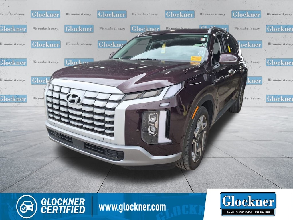 Glockner of Ironton is proud to offer this fantastic-looking 2024 Hyundai Palisade in Sierra Burgundy. This 2024 Hyundai Palisade has passed our comprehensive inspection and comes with the following features; Premium Package (115-Volt AC Power Outlet, 12.3 Full-Digital Multi-Information Display, 3rd Row USB Outlets, Acoustic Rear Side Glass, Blind-Spot View Monitor, Driver 4-Way Power Lumbar Support, Forward Collision Avoidance Assist, Front Parking Sensors, harman/kardon® Audio System, Heated 2nd Row Seats, Heated Steering Wheel, Highway Driving Assist 2, HomeLink, Hydro-Phobic Front Side Glass, Integrated Memory Driver Seat & Mirrors, Option Group 02, Passenger Talk (In-Car Intercom), Power Sunroof, Rear Side Window Sunshades, Surround View Monitor, Ventilated Front & 2nd-Row Seats, and Wheels: 20 x 7.5J Alloy), Glockner Certified Certified, 3.648 Axle Ratio, 3rd row seats: split-bench, 4-Wheel Disc Brakes, 6 Speakers, ABS brakes, Air Conditioning, All-Season Fitted Liners, Alloy wheels, AM/FM radio: SiriusXM, Apple CarPlay & Android Auto, Auto High-beam Headlights, Auto-dimming door mirrors, Auto-dimming Rear-View mirror, Automatic temperature control, Brake assist, Bumpers: body-color, Cargo Cover/Screen, Cargo Net, Cargo Tray, Carpeted Floor Mats, Delay-off headlights, Driver door bin, Driver vanity mirror, Dual front impact airbags, Dual front side impact airbags, Electronic Stability Control, Emergency communication system, Exterior Parking Camera Rear, Four wheel independent suspension, Front anti-roll bar, Front Bucket Seats, Front Center Armrest, Front dual zone A/C, Front reading lights, Fully automatic headlights, H-Tex Leatherette Seat Trim, Heated door mirrors, Heated Front Bucket Seats, Heated front seats, Illuminated entry, Knee airbag, Low tire pressure warning, Navigation System, Occupant sensing airbag, Outside temperature display, Overhead airbag, Overhead console, Panic alarm, Passenger door bin, Passenger vanity mirror, Power door mirrors, Power driver seat, Power Liftgate, Power passenger seat, Power steering, Power windows, Radio data system, Radio: AM/FM/MP3 Audio System, Rear air conditioning, Rear anti-roll bar, Rear audio controls, Rear reading lights, Rear side impact airbag, Rear window defroster, Rear window wiper, Reclining 3rd row seat, Remote keyless entry, Security system, Speed control, Speed-sensing steering, Split folding rear seat, Spoiler, Steering wheel mounted audio controls, Tachometer, Telescoping steering wheel, Tilt steering wheel, Traction control, Trip computer, Turn signal indicator mirrors, Variably intermittent wipers, Wheel Locks, and Wheels: 18 x 7.5J Painted Finish Alloy.