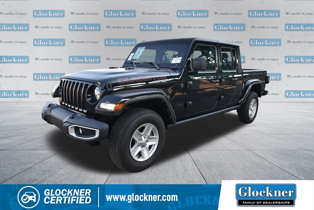 Glockner of Ironton is proud to offer this great 2022 Jeep Gladiator in Black Clearcoat. This 2022 Jeep Gladiator has passed our comprehensive inspection and comes with the following features; Convenience Group (Universal Garage Door Opener), Popular Equipment Package (Black 3-Piece Hard Top, Freedom Panel Storage Bag, Rear Sliding Window, and Rear Window Defroster), Quick Order Package 24S Sport S (Automatic Headlamps, Body Color Fender Flares (2-Piece), Daytime Running Lamp System, Deep Tint Sunscreen Windows, Front 1-Touch Down Power Windows, Leather Wrapped Steering Wheel, Normal Duty Plus Suspension, Power Heated Mirrors, Power Tailgate Lock, Remote Keyless Entry, Security Alarm, Speed Sensitive Power Locks, Sport S, Sun Visors w/Illuminated Vanity Mirrors, and Wheels: 17 x 7.5 Tech Silver Aluminum), Trailer Tow Package (240 Amp Alternator, Class IV Receiver Hitch, Heavy-Duty Engine Cooling, and Trailer Hitch Zoom), Glockner Certified Certified, 110 MPH Vehicle Max Speed Calibration, 3.73 Rear Axle Ratio, 4-Wheel Disc Brakes, 8 Speakers, ABS brakes, Air Conditioning, AM/FM radio, Apple CarPlay, Apple CarPlay/Android Auto, Brake assist, Cloth Low-Back Bucket Seats, Compass, Delay-off headlights, Driver door bin, Driver vanity mirror, Dual front impact airbags, Dual front side impact airbags, Electronic Stability Control, Emergency communication system: SiriusXM Guardian, Front anti-roll bar, Front Bucket Seats, Front Center Armrest w/Storage, Front fog lights, Front reading lights, Google Android Auto, GPS Antenna Input, Integrated Center Stack Radio, Integrated roll-over protection, Integrated Voice Command w/Bluetooth, Low tire pressure warning, Normal Duty Suspension, Occupant sensing airbag, Outside temperature display, ParkView Rear Back-Up Camera, Passenger door bin, Passenger vanity mirror, Power steering, Radio data system, Radio: Uconnect 4 w/7 Display, Rear anti-roll bar, Rear reading lights, Speed control, Split folding rear seat, Steering wheel mounted audio controls, Tachometer, Telescoping steering wheel, Tilt steering wheel, Traction control, Trip computer, USB Host Flip, Variably intermittent wipers, and Wheels: 17 x 7.5 Black Steel Styled.
