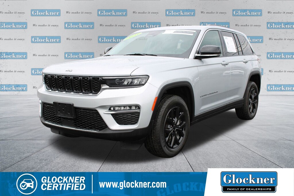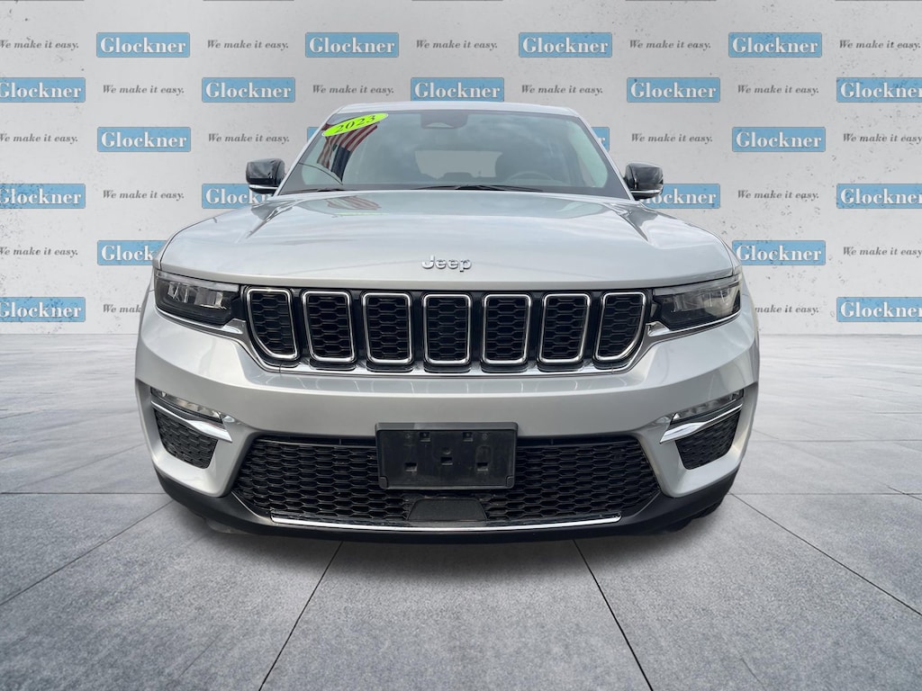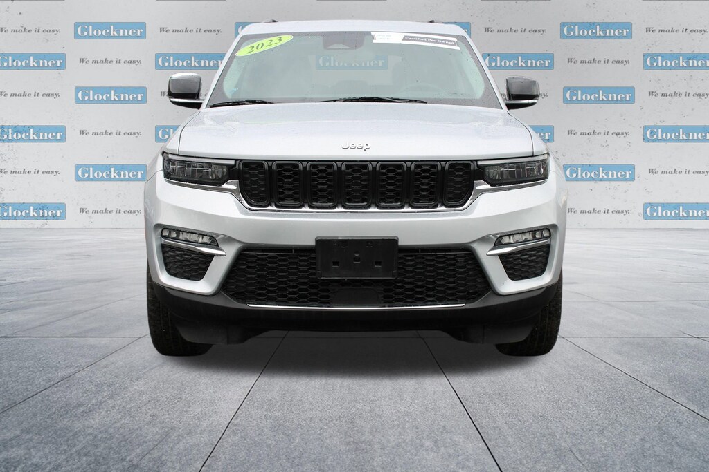 Glockner Chevrolet is proud to offer this terrific 2023 Jeep Grand Cherokee in Silver Zynith. This 2023 Jeep Grand Cherokee has passed our comprehensive inspection and comes with the following features; Quick Order Package 23E, Glockner Certified Certified, 4WD, Navigation System, Power Liftgate, 3.45 Rear Axle Ratio, 4-Wheel Disc Brakes, 6 Speakers, ABS brakes, Active Noise Control System, Air Conditioning, Alloy wheels, AM/FM radio: SiriusXM with 360L, Anti-whiplash front head restraints, Audio memory, Auto High-beam Headlights, Automatic temperature control, Brake assist, Bumpers: body-color, Capri Leatherette Seats, Compass, Delay-off headlights, Driver door bin, Driver vanity mirror, Dual front impact airbags, Dual front side impact airbags, Electronic Stability Control, Emergency communication system, Four wheel independent suspension, Front anti-roll bar, Front Bucket Seats, Front Center Armrest w/Storage, Front dual zone A/C, Front fog lights, Front reading lights, Fully automatic headlights, Garage door transmitter, Heated door mirrors, Heated front seats, Heated rear seats, Heated steering wheel, Illuminated entry, Knee airbag, Low tire pressure warning, Memory seat, Molded In Color Black/Gloss Black Roof Rails, Normal Duty Suspension, Occupant sensing airbag, Outside temperature display, Overhead airbag, Overhead console, Panic alarm, ParkView Rear Back-Up Camera, Passenger door bin, Passenger vanity mirror, Power door mirrors, Power driver seat, Power passenger seat, Power steering, Power windows, Radio data system, Radio: Uconnect 5 Nav w/10.1 Display, Rear anti-roll bar, Rear reading lights, Rear window defroster, Rear window wiper, Remote keyless entry, Security system, Speed control, Speed-Sensitive Wipers, Split folding rear seat, Spoiler, Steering wheel mounted audio controls, Tachometer, Telescoping steering wheel, Tilt steering wheel, Traction control, Trip computer, Turn signal indicator mirrors, Variably intermittent wipers, Voltmeter, and Wheels: 18 x 8 Fully Painted Aluminum.