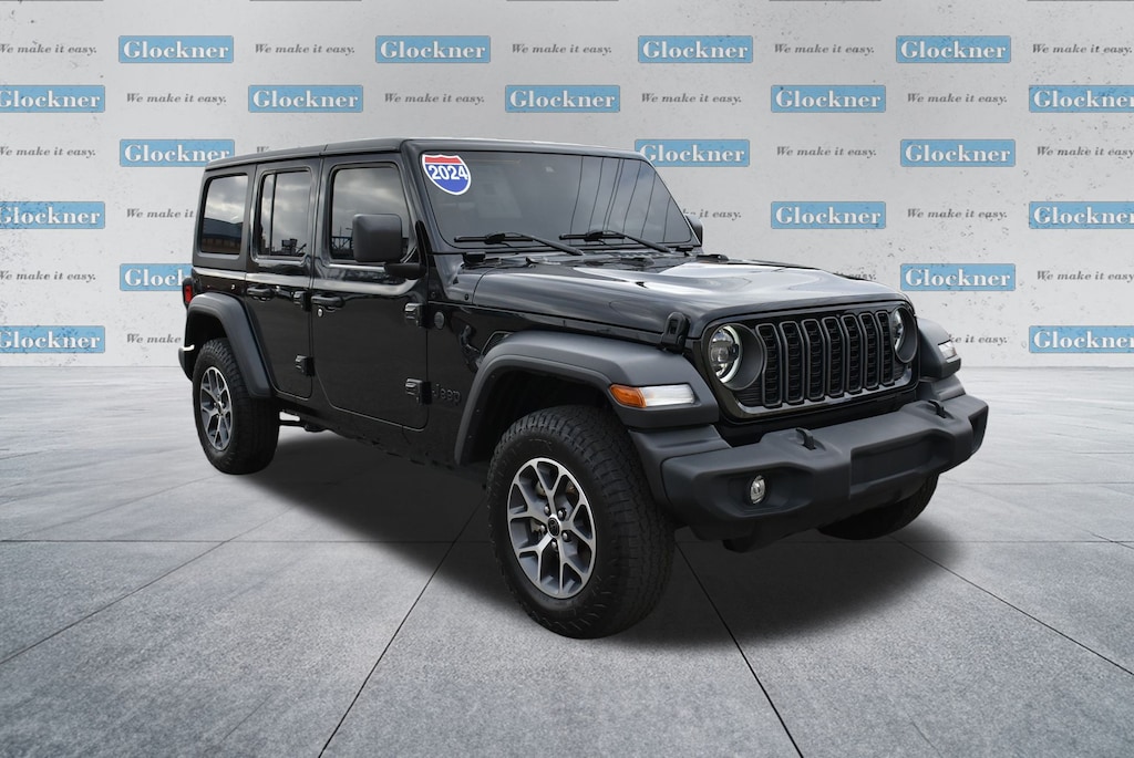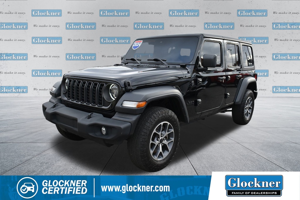 Glockner Chrysler Dodge Jeep Ram of Ashland is proud to offer this attractive-looking and fun 2024 Jeep Wrangler in Black Clearcoat. This 2024 Jeep Wrangler has passed our comprehensive inspection and comes with the following features; Convenience Group (2-Door Passive Entry, Front Door Locks, Air Conditioning w/Auto Temperature Control, Cluster 7.0" TFT Color Display, Emergency/Assistance Call, and Remote Start System), LED Headlamp & Fog Lamp Group, Quick Order Package 24S Sport S, Glockner Certified Certified, 110 MPH Vehicle Max Speed Calibration, 4-Wheel Disc Brakes, 8 Speakers, ABS brakes, Air Conditioning, AM/FM radio, Apple CarPlay/Android Auto, Aux Battery, Black 3-Piece Hard Top, Brake assist, Cloth Low-Back Bucket Seats, Compass, Delay-off headlights, Driver door bin, Driver vanity mirror, Dual front impact airbags, Dual front side impact airbags, Electronic Stability Control, Front anti-roll bar, Front Bucket Seats, Front Center Armrest w/Storage, Front fog lights, Front reading lights, Integrated roll-over protection, Low tire pressure warning, MOPAR All-Weather Floor Mats, Non-Lock Fuel Cap w/o Discriminator, Normal Duty Suspension, Occupant sensing airbag, Outside temperature display, Overhead airbag, ParkView Rear Back-Up Camera, Passenger door bin, Passenger vanity mirror, Power steering, Radio data system, Radio: Uconnect 5 w/12.3" Display, Rear anti-roll bar, Rear reading lights, Speed control, Split folding rear seat, Steering wheel mounted audio controls, Stop-Start Dual Battery System, Tachometer, Telescoping steering wheel, Tilt steering wheel, Traction control, Trip computer, Variably intermittent wipers, Wheels: 17" x 7.5" Black Steel Styled, and Wheels: 17" x 7.5" Machined w/Black Pockets.