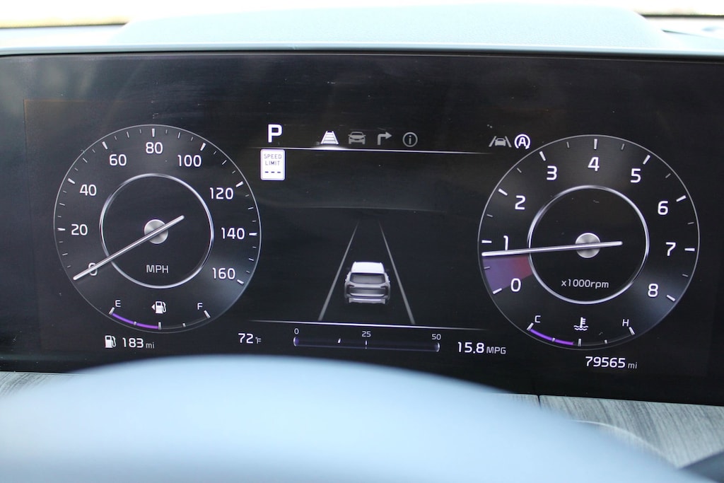 The spacious and luxurious interior of the Telluride SX-Prestige offers seating for up to 8 passengers, with premium Nappa Leather Seat Trim, Heated Rear Seats, and Ventilated Rear Seats for maximum comfort. The versatile cargo space and split-folding 3rd-row seat make this SUV perfect for your family's adventures.