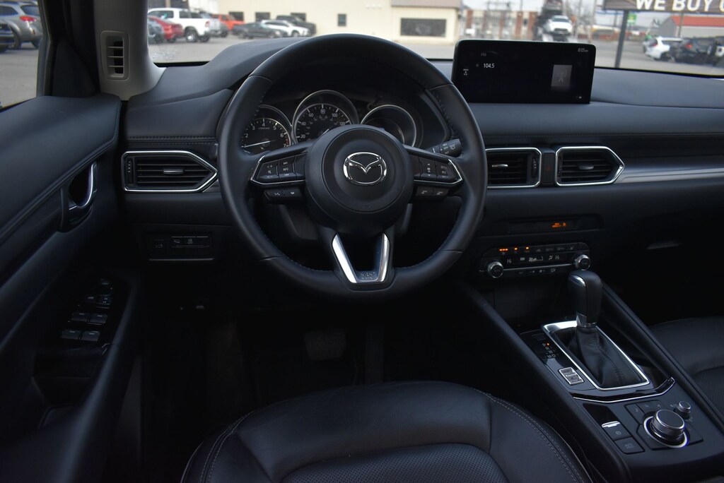 Glockner Chrysler Dodge Jeep Ram of Ashland is proud to offer this fantastic 2025 Mazda CX-5 in Jet Black. This 2025 Mazda CX-5 has passed our comprehensive inspection and comes with the following features; Glockner Certified Certified, 4-Wheel Disc Brakes, 6 Speakers, ABS brakes, Air Conditioning, Alloy wheels, AM/FM radio, AppLink/Apple CarPlay and Android Auto, Auto High-beam Headlights, Auto-dimming Rear-View mirror, Automatic temperature control, Brake assist, Bumpers: body-color, Delay-off headlights, Driver door bin, Driver vanity mirror, Dual front impact airbags, Dual front side impact airbags, E911 Automatic Emergency Notification, Electronic Stability Control, Emergency communication system: MAZDA CONNECT, Exterior Parking Camera Rear, Four wheel independent suspension, Front anti-roll bar, Front Bucket Seats, Front Center Armrest w/Storage, Front dual zone A/C, Front reading lights, Fully automatic headlights, Garage door transmitter: HomeLink, Heated Front Bucket Seats, Heated front seats, Illuminated entry, Infotainment System Voice Command, Leather Seat Trim, Leather Shift Knob, Leather steering wheel, Low tire pressure warning, Memory seat, Multifunction Commander Control, Occupant sensing airbag, Outside temperature display, Overhead airbag, Overhead console, Pandora, Panic alarm, Passenger door bin, Passenger vanity mirror, Power door mirrors, Power driver seat, Power Liftgate, Power moonroof, Power passenger seat, Power steering, Power windows, Radio Broadcast Data System Program Information, Radio data system, Radio: AM/FM/HD Audio System, Rain sensing wipers, Rear anti-roll bar, Rear reading lights, Rear seat center armrest, Rear window defroster, Rear window wiper, Remote keyless entry, SMS Text Msg Audio Delivery & Reply, Speed control, Speed-sensing steering, Split folding rear seat, Spoiler, Steering wheel mounted audio controls, Tachometer, Telescoping steering wheel, Tilt steering wheel, Traction control, Trip computer, Turn signal indicator mirrors, Variably intermittent wipers, and Wheels: 17" x 7J Aluminum Alloy.
