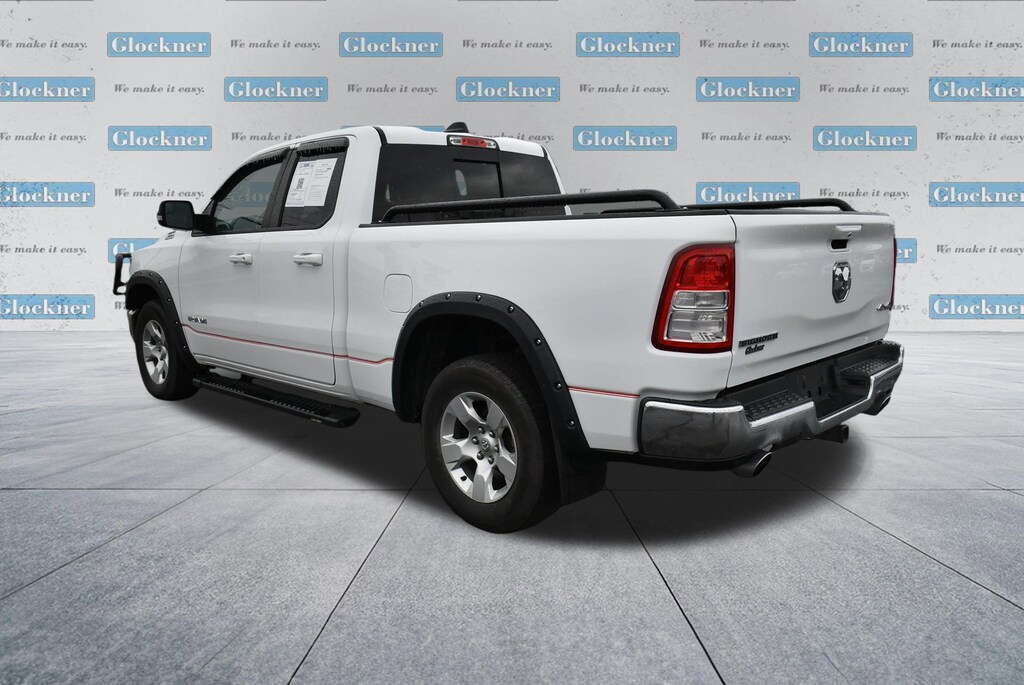 Glockner of Ironton is proud to offer this charming 2021 Ram 1500 in Bright White Clearcoat. This 2021 Ram 1500 has passed our comprehensive inspection and comes with the following features; Big Horn Level 2 Equipment Group (115V Auxiliary Power Outlet, 115V Auxiliary Rear Power Outlet, 400W Inverter, Air Conditioning ATC w/Dual Zone Control, Auto-Dimming Exterior Driver Mirror, Auto-Dimming Rear-View Mirror, Black Premium Power Mirrors, Class IV Receiver Hitch, Cluster 7.0 TFT Color Display, Exterior Mirrors Courtesy Lamps, Exterior Mirrors w/Supplemental Signals, Foam Bottle Insert (Door Trim Panel), For More Info, Call 800-643-2112, Glove Box Lamp, Heated Front Seats, Heated Steering Wheel, Media Hub w/2 Charge Only USBs, ParkSense Front/Rear Park Assist w/Stop, Power 4-Way Driver Lumbar Adjust, Power 8-Way Driver Seat, Power Adjustable Pedals, Power-Folding Mirrors, Rear Dome w/On/Off Switch Lamp, Rear Power Sliding Window, Rear Window Defroster, Security Alarm, SiriusXM Radio Service, Sun Visors w/Illuminated Vanity Mirrors, and Universal Garage Door Opener), Quick Order Package 25Z Big Horn (Big Horn Badge), Glockner Certified Certified, 3 Rear Seat Head Restraints, 3.21 Rear Axle Ratio, 4 Way Front Headrests, 4-Wheel Disc Brakes, 40/20/40 Split Bench Seat, 48V Belt Starter Generator, 6 Speakers, ABS brakes, Air Conditioning, Alloy wheels, AM/FM radio, Black Exterior Mirrors, Brake assist, Bumpers: chrome, Cloth Bench Seat, Compass, Delay-off headlights, Driver door bin, Dual front impact airbags, Dual front side impact airbags, Electronic Stability Control, Front anti-roll bar, Front Center Armrest w/Storage, Front fog lights, Front License Plate Bracket, Front reading lights, Front Seat Back Map Pockets, Front wheel independent suspension, Fully automatic headlights, GPS Antenna Input, Heated door mirrors, Illuminated entry, Integrated Voice Command w/Bluetooth, Leather steering wheel, Low tire pressure warning, Manual Adjust 4-Way Front Passenger Seat, MOPAR Front & Rear Rubber Floor Mats, Occupant sensing airbag, Outside temperature display, Overhead airbag, Overhead console, Panic alarm, ParkView Rear Back-Up Camera, Passenger door bin, Passenger vanity mirror, Power door mirrors, Power steering, Power windows, Radio data system, Radio: Uconnect 3 w/5 Display, Radio: Uconnect 4 w/8.4 Display, Rear 60/40 Folding Seat, Rear anti-roll bar, Rear seat center armrest, Rear step bumper, Remote keyless entry, Remote Start System, Speed control, Split folding rear seat, Steering wheel mounted audio controls, Tachometer, Telescoping steering wheel, Tilt steering wheel, Traction control, Trip computer, Variably intermittent wipers, Voltmeter, and Wheels: 18 x 8 Cast-Aluminum Painted.