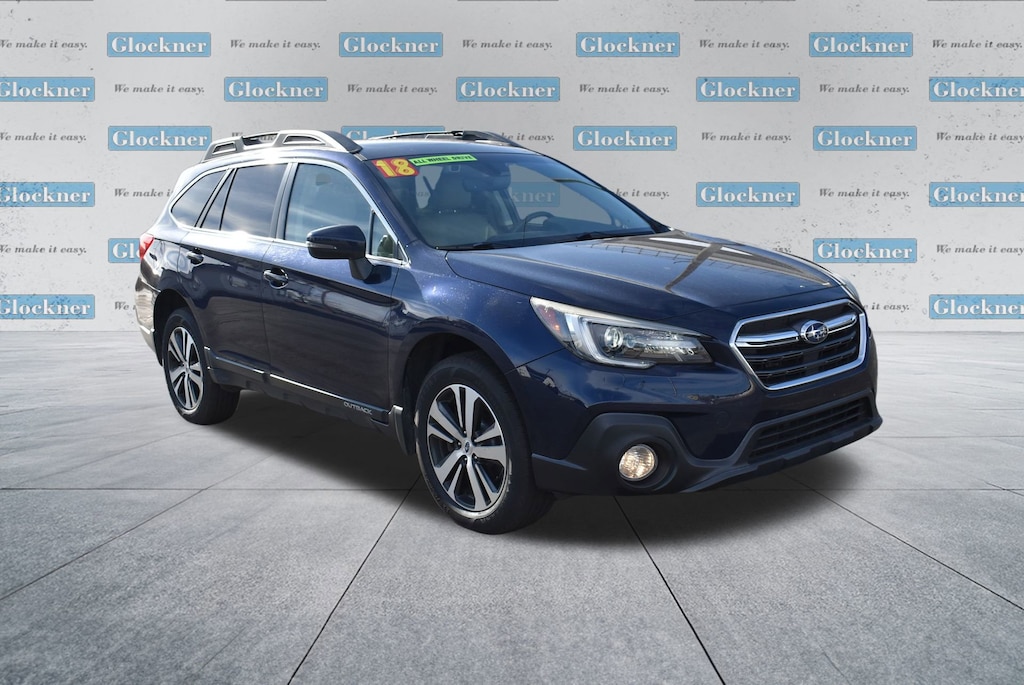 Glockner of Ironton is proud to offer this superb-looking 2018 Subaru Outback in Dark Blue Pearl. This 2018 Subaru Outback has passed our comprehensive inspection and comes with the following features; 12 Speakers, 4-Wheel Disc Brakes, 4.111 Axle Ratio, ABS brakes, Air Conditioning, Alloy wheels, AM/FM radio: SiriusXM, Anti-whiplash front head restraints, Apple CarPlay/Android Auto, Auto-dimming Rear-View mirror, Automatic temperature control, Brake assist, Bumpers: body-color, CD player, Compass, Driver door bin, Driver vanity mirror, Dual front impact airbags, Dual front side impact airbags, Electronic Stability Control, Emergency communication system: STARLINK, Exterior Parking Camera Rear, Four wheel independent suspension, Front anti-roll bar, Front Bucket Seats, Front Center Armrest w/Storage, Front dual zone A/C, Front fog lights, Front reading lights, Fully automatic headlights, Garage door transmitter, harman/kardon Surround Sound Speaker System, harman/kardon® Speakers, Heated door mirrors, Heated front seats, Heated rear seats, Heated Reclining Front Bucket Seats, Illuminated entry, Leather Shift Knob, Low tire pressure warning, Memory seat, Occupant sensing airbag, Outside temperature display, Overhead airbag, Overhead console, Panic alarm, Passenger door bin, Passenger vanity mirror, Perforated Leather-Trimmed Upholstery, Power door mirrors, Power driver seat, Power Liftgate, Power moonroof, Power passenger seat, Power steering, Power windows, Radio: Subaru STARLINK 8.0 Multimedia Plus System, Rear anti-roll bar, Rear seat center armrest, Rear window defroster, Rear window wiper, Remote keyless entry, Roof rack, Security system, Smartphone Integration, Speed control, Speed-sensing steering, Split folding rear seat, Spoiler, Steering wheel mounted audio controls, Steering Wheel Paddle Shift Control Switches, Tachometer, Telescoping steering wheel, Tilt steering wheel, Traction control, Trip computer, Turn signal indicator mirrors, Variably intermittent wipers, Vehicle Information Display, and Wheels: 18 x 7.0 Aluminum Alloy w/Machine Finish.
